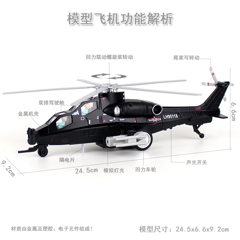 武直10飞机模型合金武装直升机十仿真金属摆件战斗机儿童玩具声光