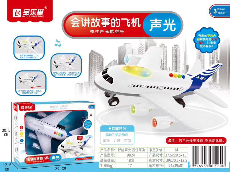新款声光故事音乐惯性仿真航空客机飞机亲子合金车益智儿童玩具