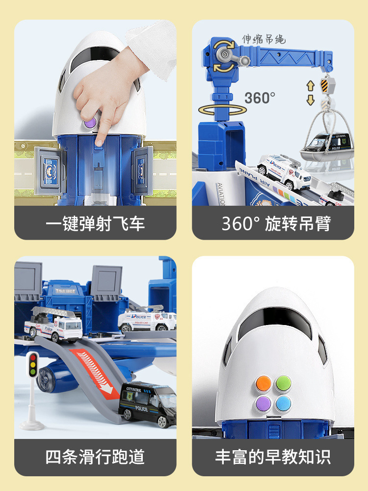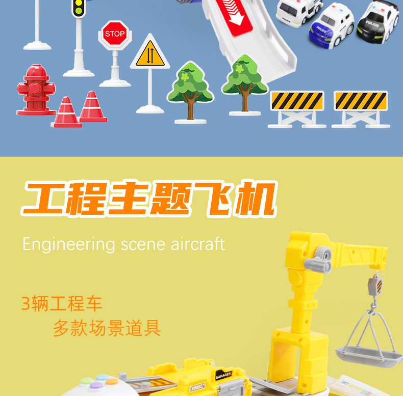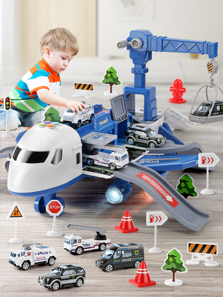 儿童玩具收纳惯性飞机弹射轨道配合金车音乐早教惯性玩具车模型