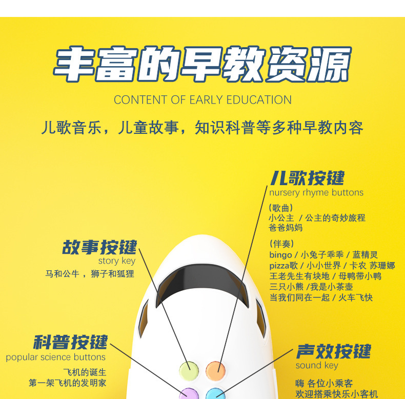 男孩早教声光飞机模型双向惯性行驶灯光会唱歌讲故事音乐飞机玩具