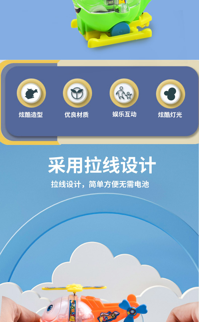 儿童拉线飞机卡通拉线直升飞机模型新奇地摊幼儿园奖品玩具
