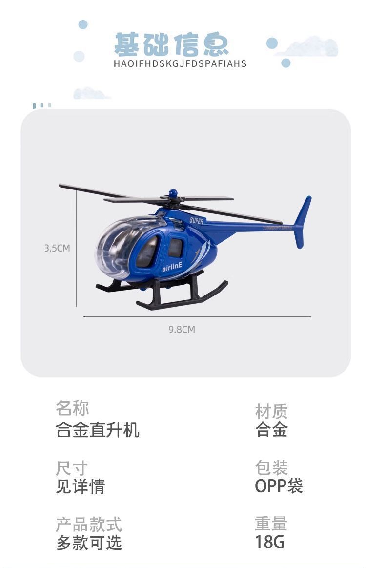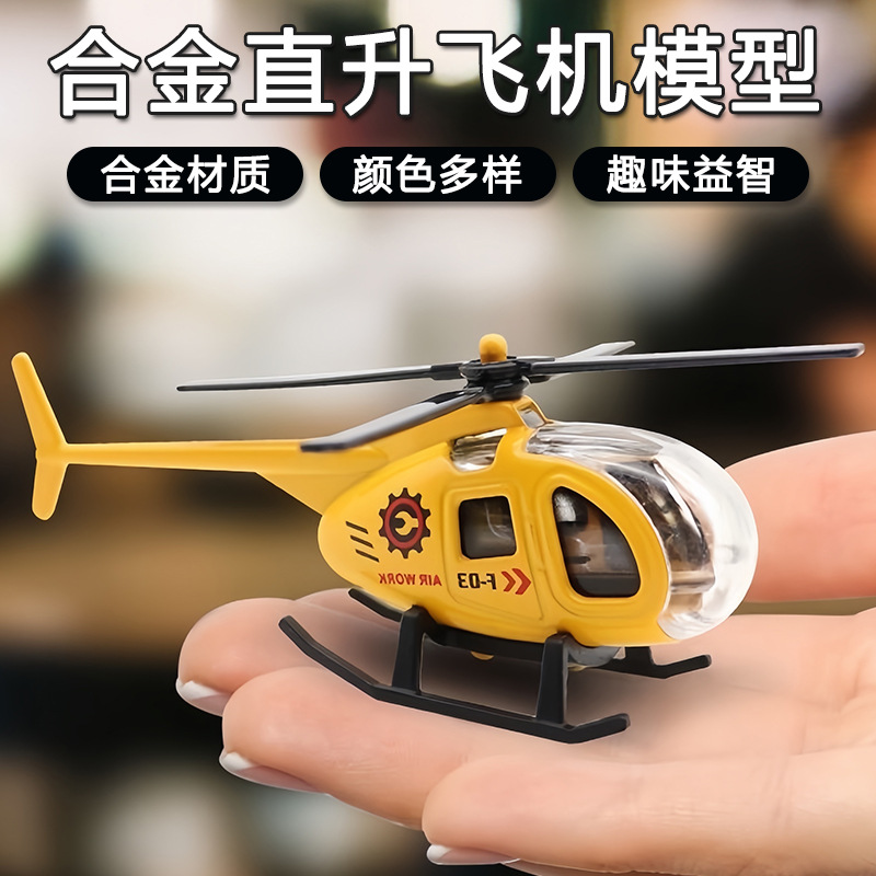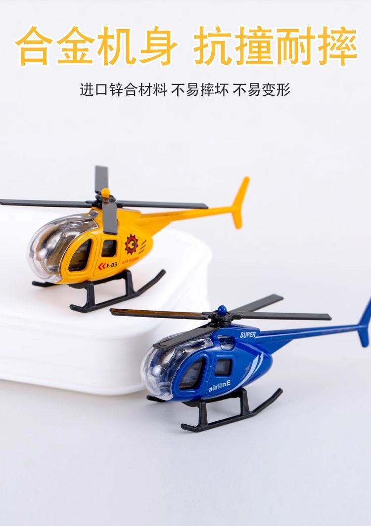 合金飞机Q版模型金属小玩具直升机桌面摆件儿童礼物地摊航模