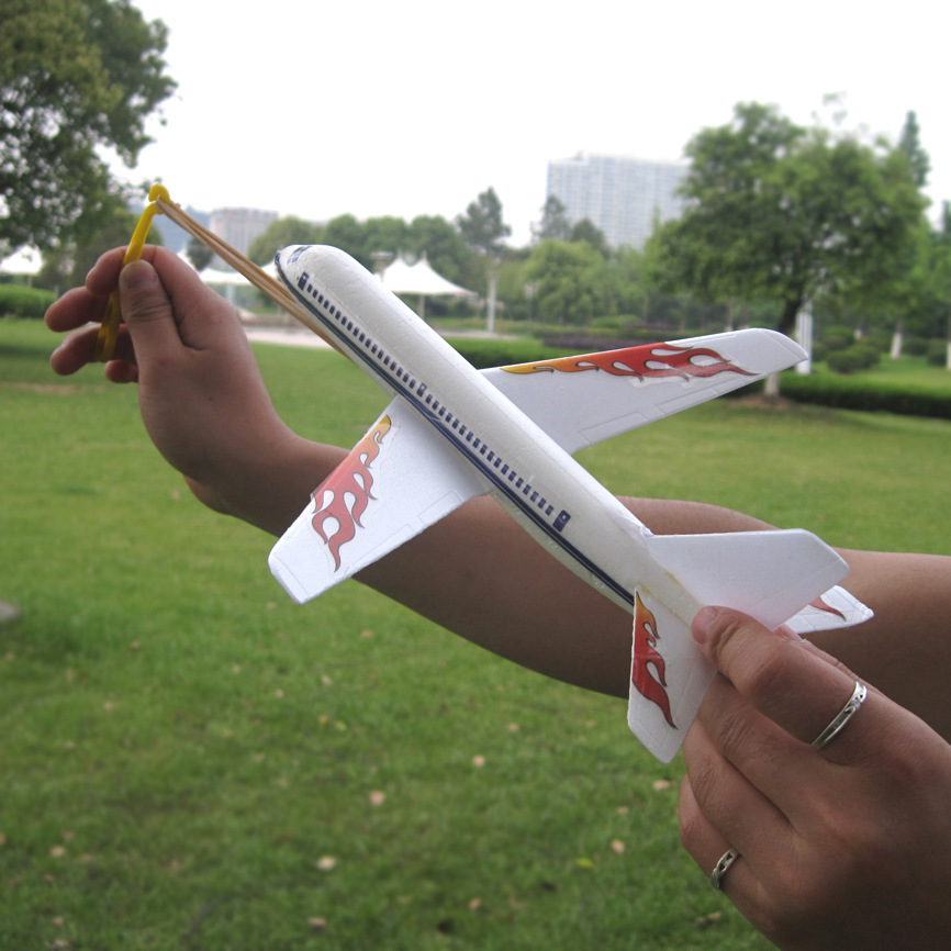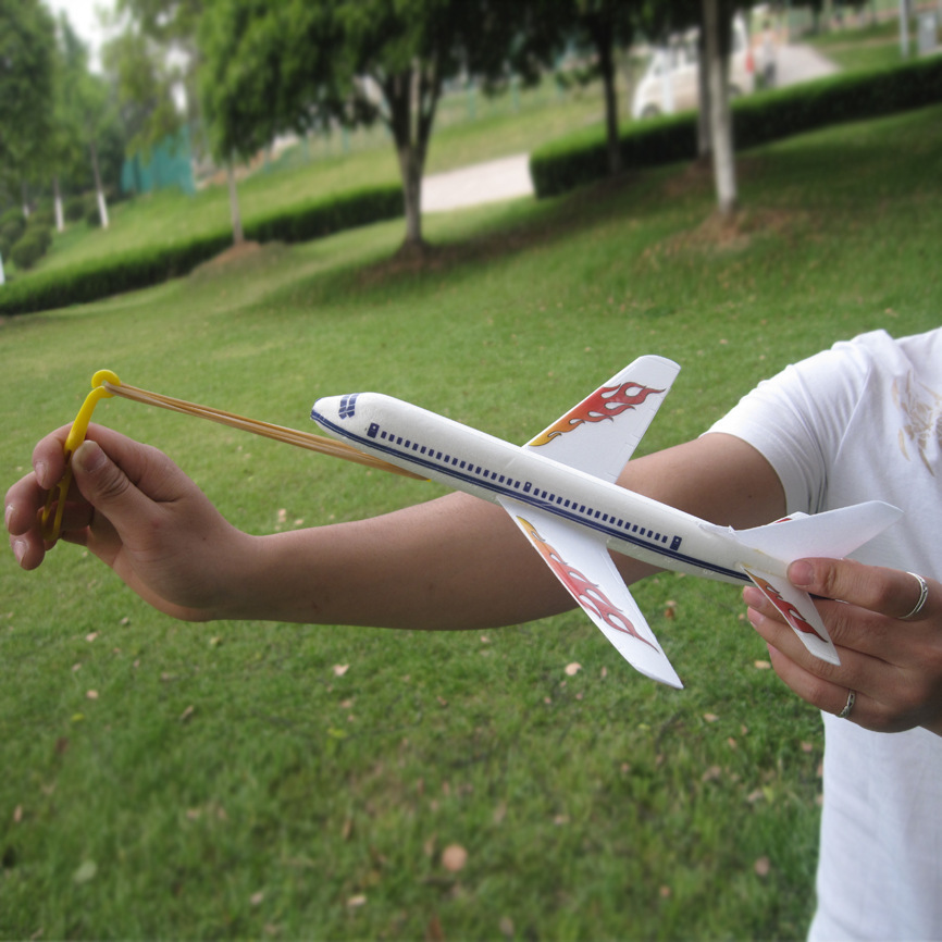 儿童手抛泡沫弹射飞机户外玩具男孩拼装橡皮筋小飞机航模模型