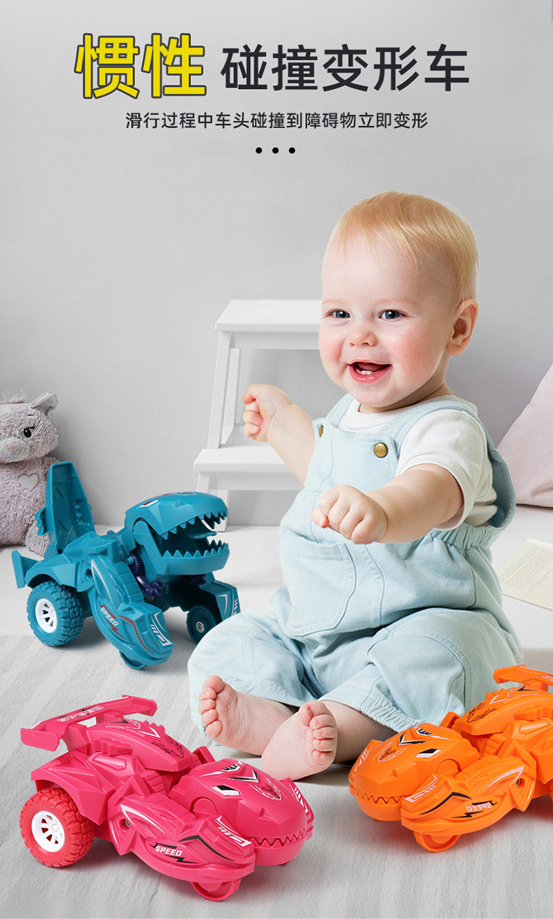 一键撞击变形恐龙玩具车惯性小汽车赛车模型男孩玩具车儿童小礼物