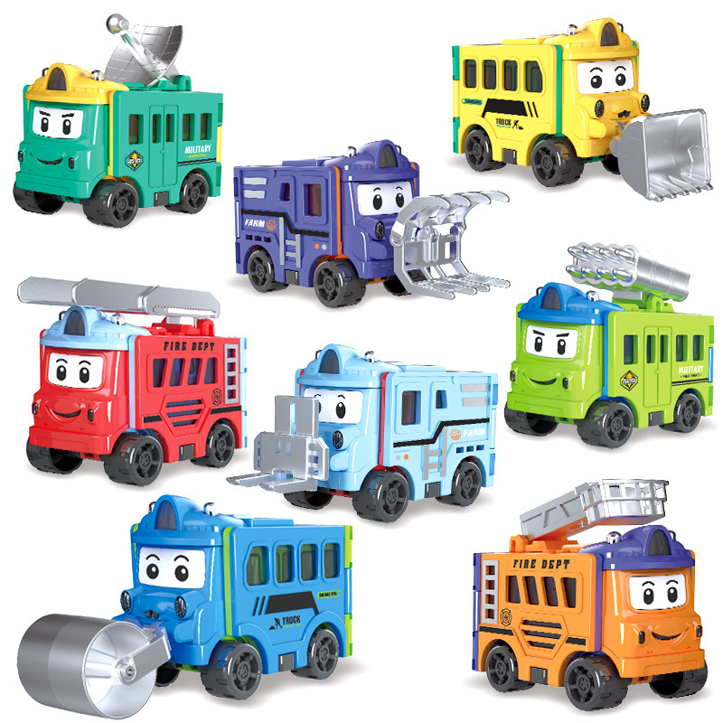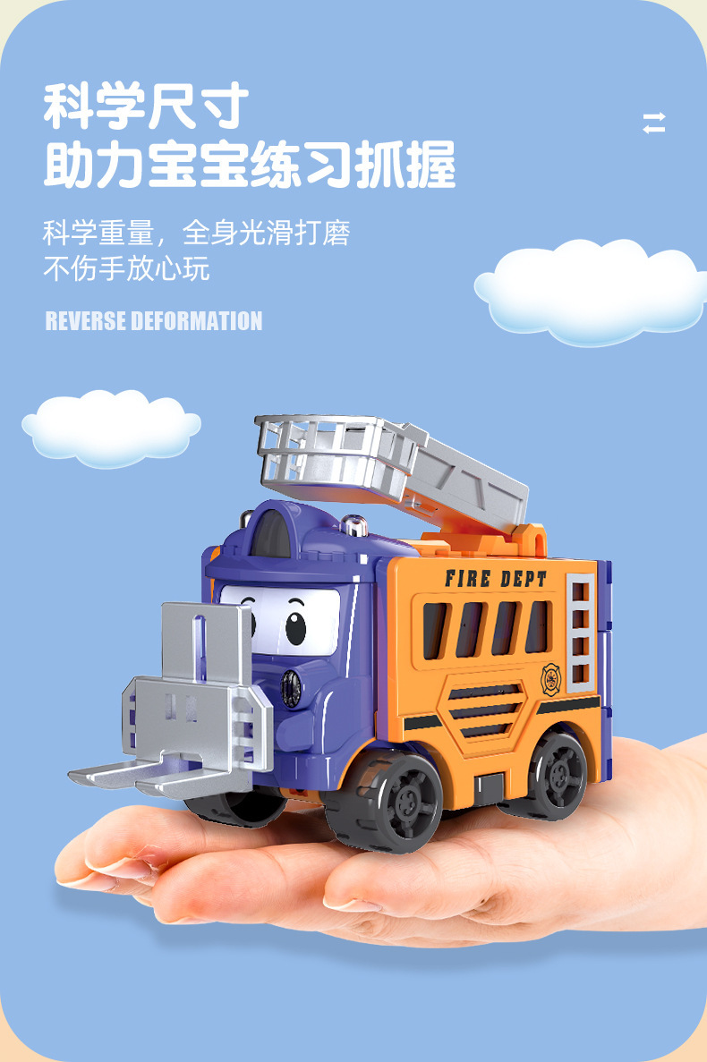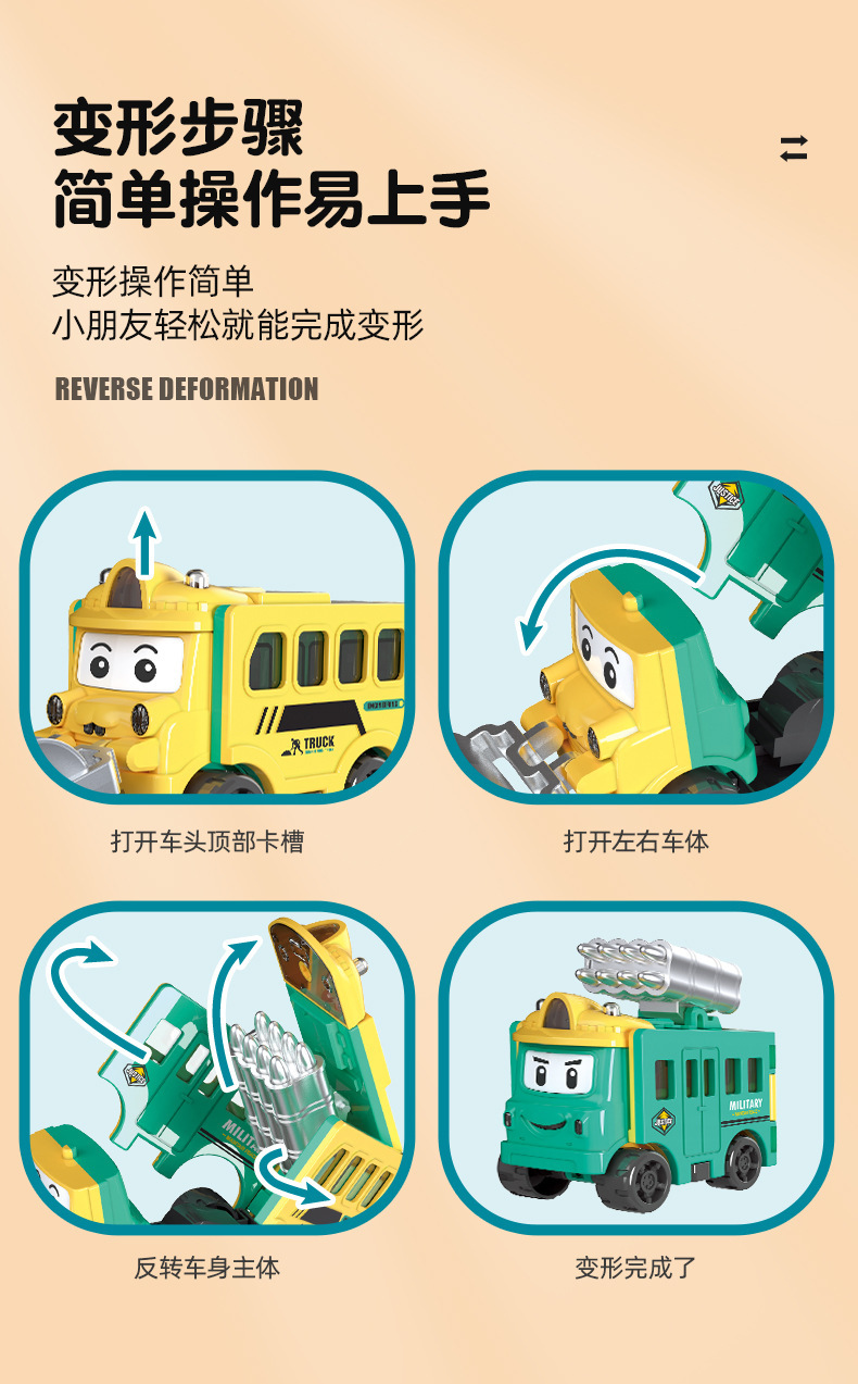 跨境儿童百变变形反转车校巴玩具惯性双面翻翻车卡通男孩汽车套装