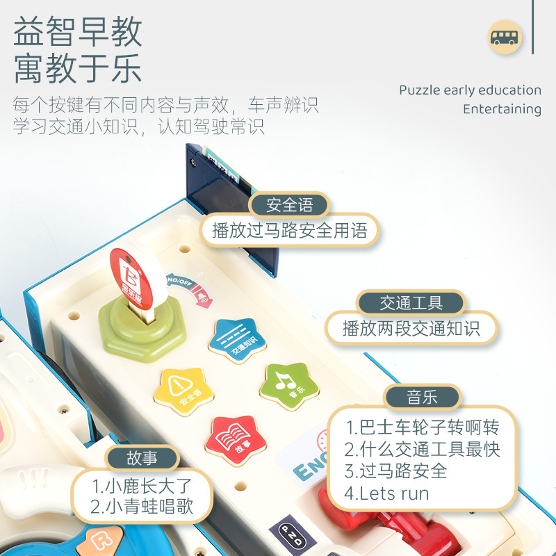 儿童早教多功能变形巴士方向盘灯光音乐惯性行走巴士玩具