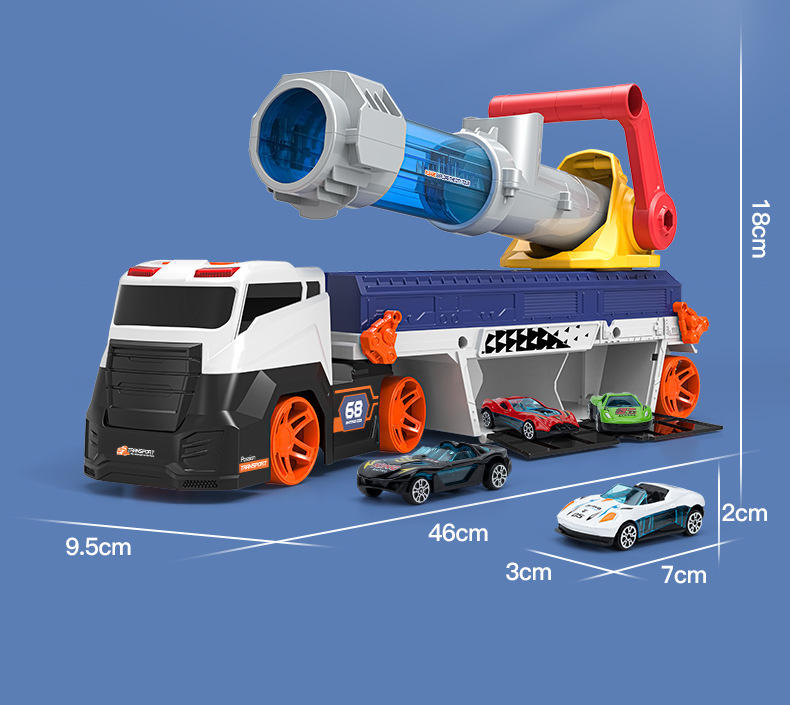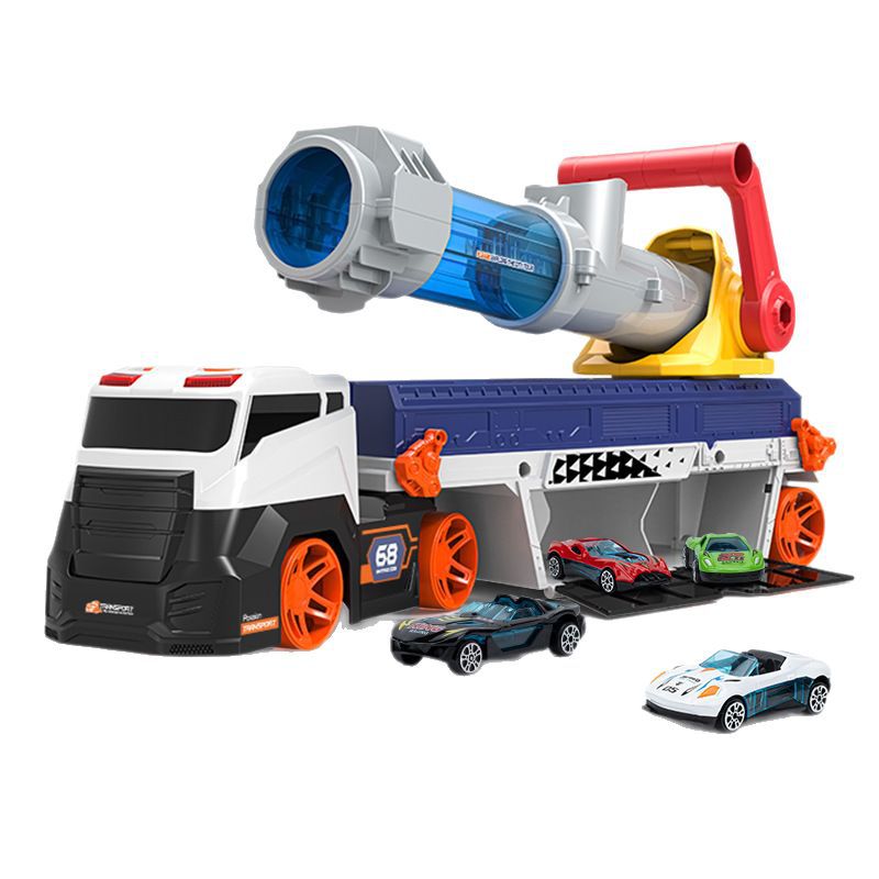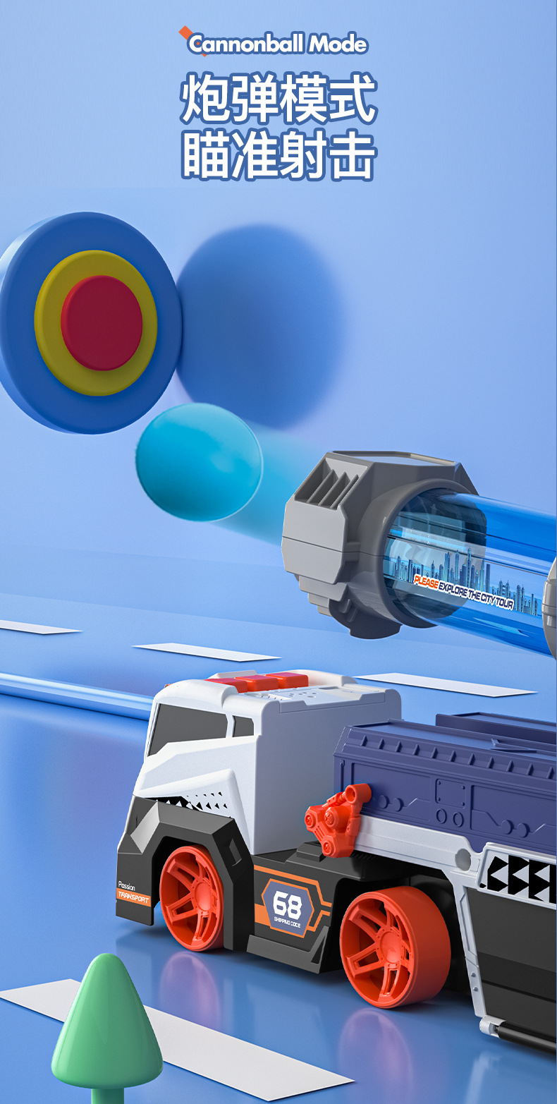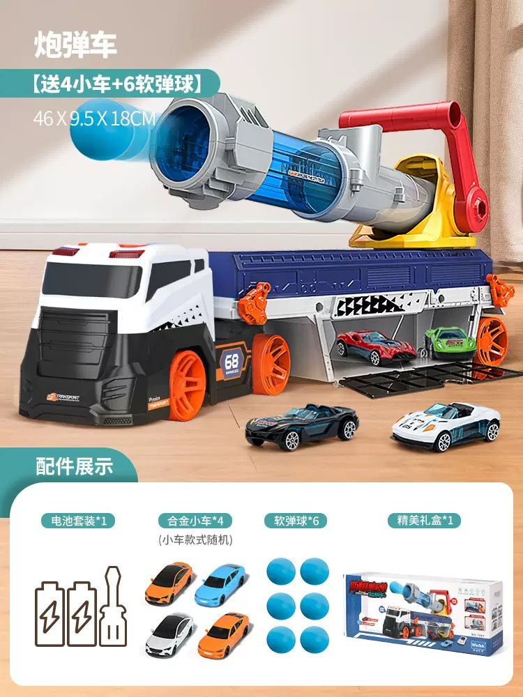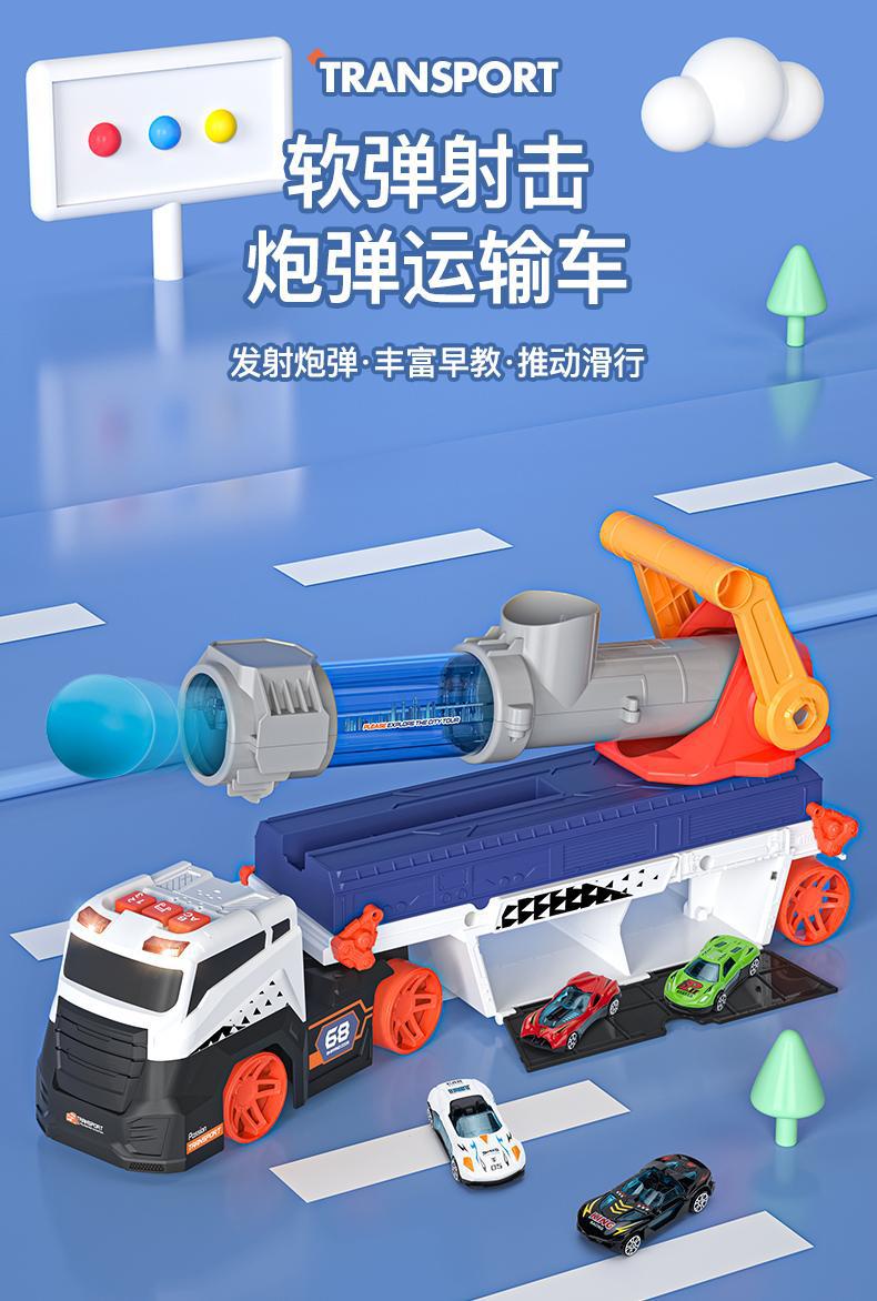 跨境儿童城市弹射炮弹运输车男孩玩具发射导弹变形轨道收纳大卡车