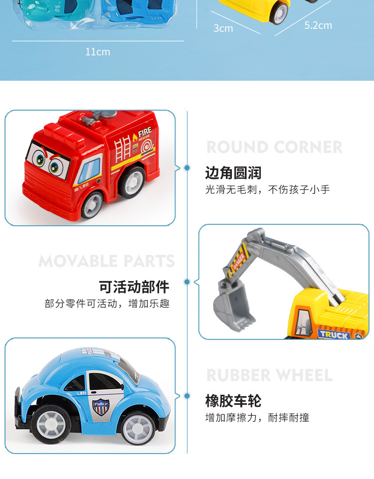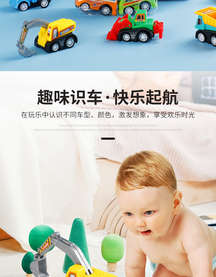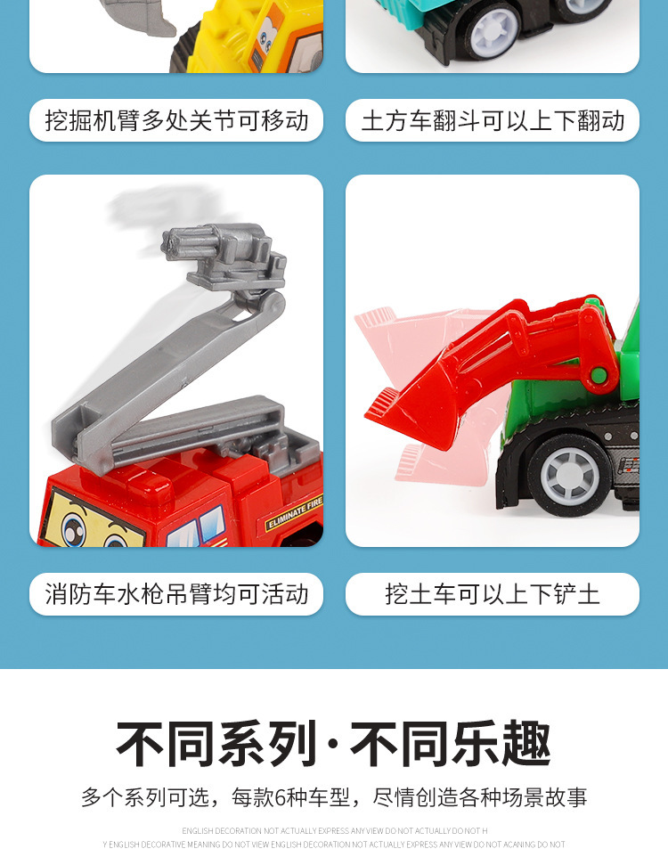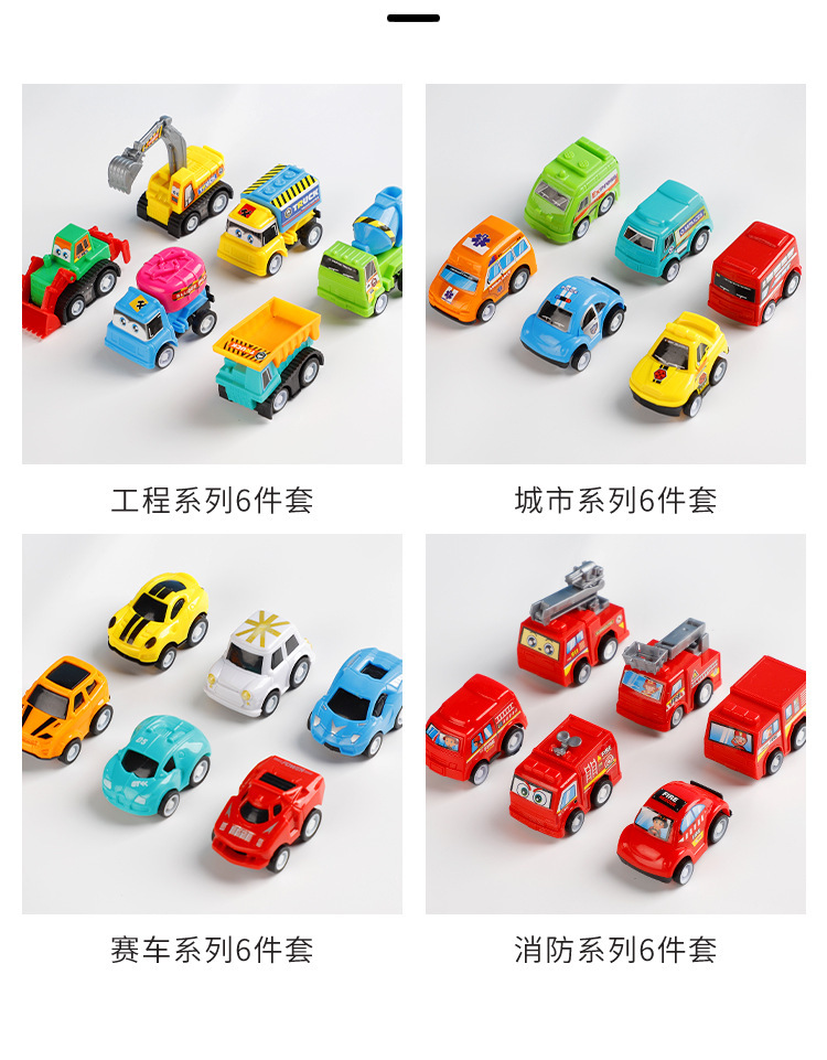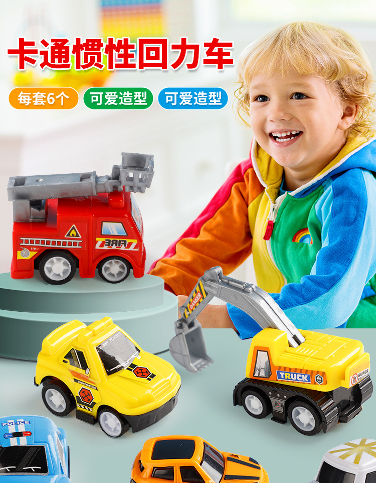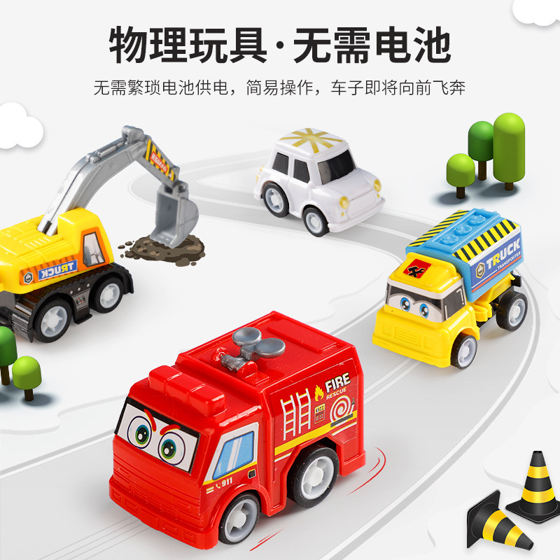 儿童迷你回力小汽车男孩宝宝交通消防车惯性工程车挖掘机套装