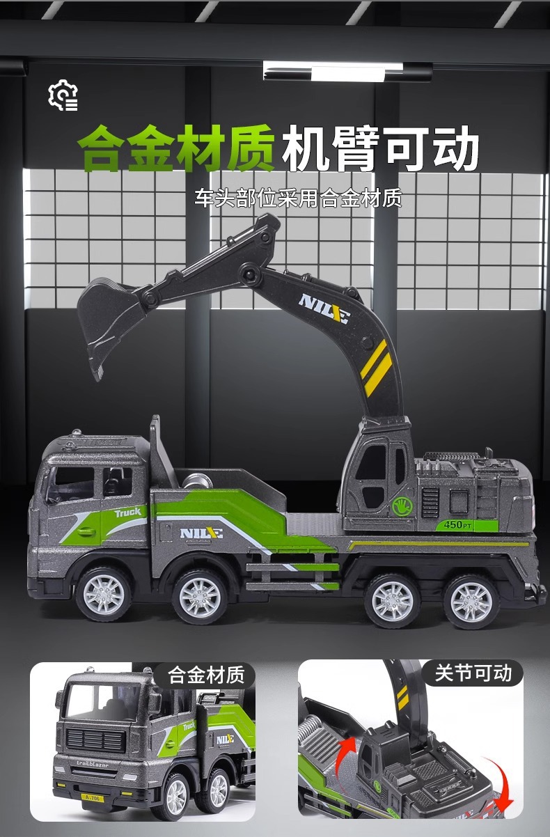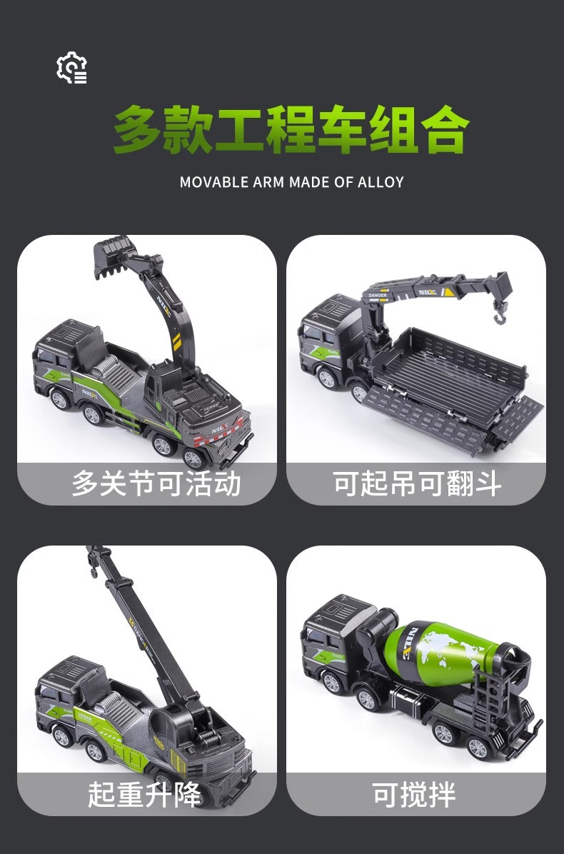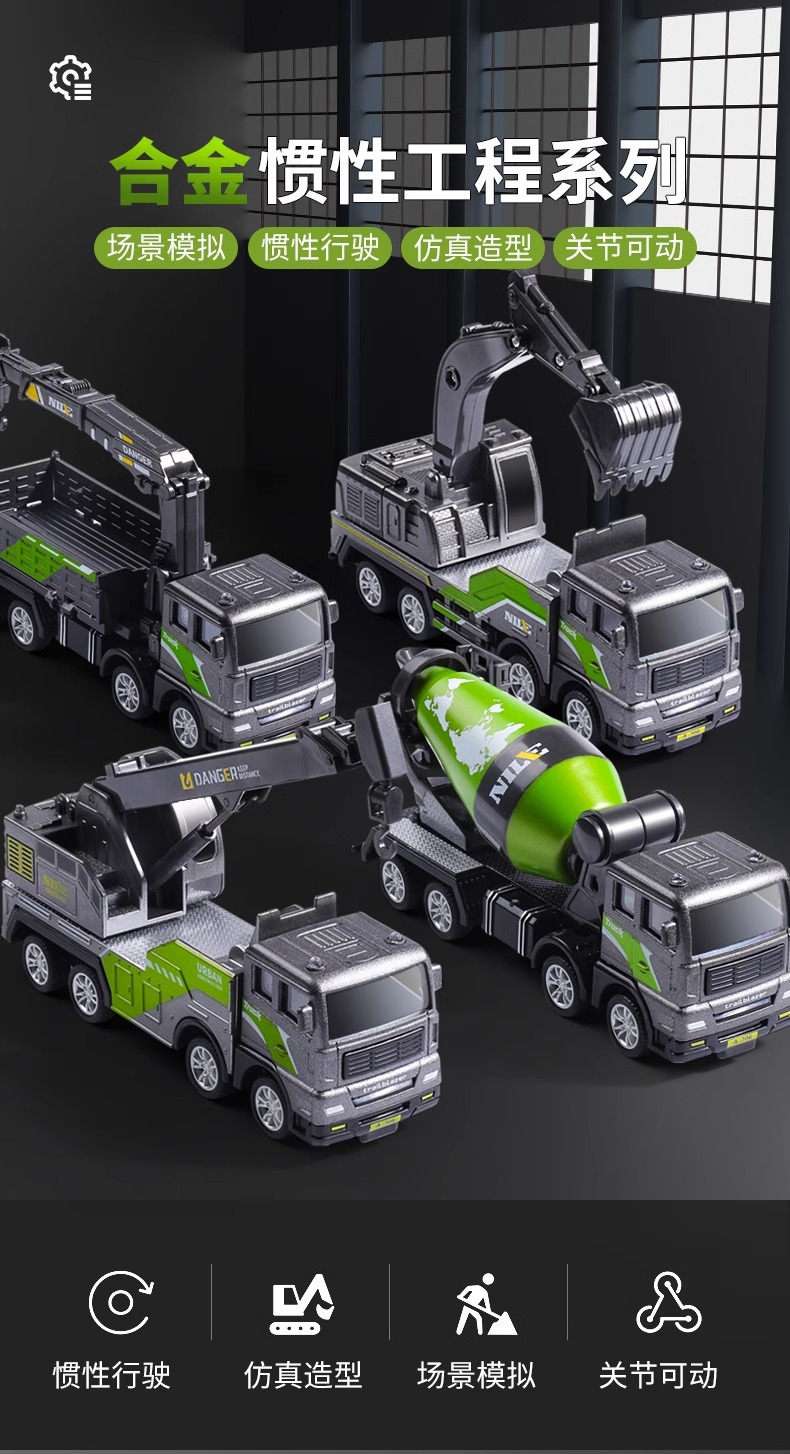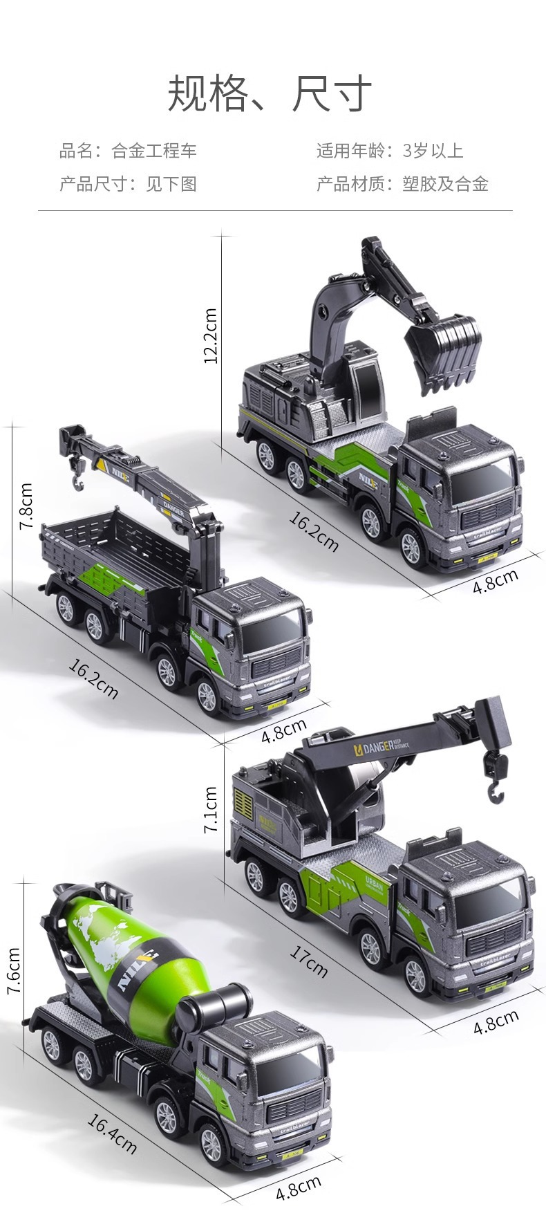 儿童合金工程车玩具吊车合金惯性仿真卡车模型工程车挖掘机玩具