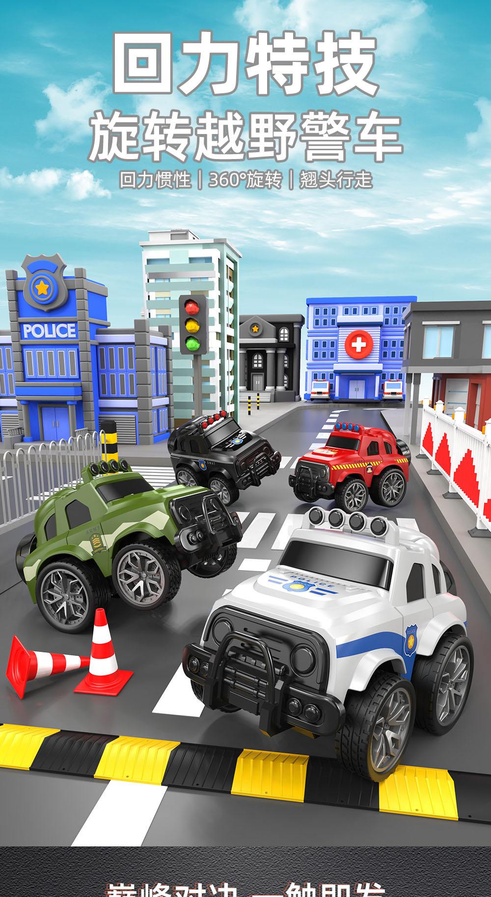 儿童迷你警车造型玩具惯性漂移翘趣味卡通玩具车儿童卡通小玩具车
