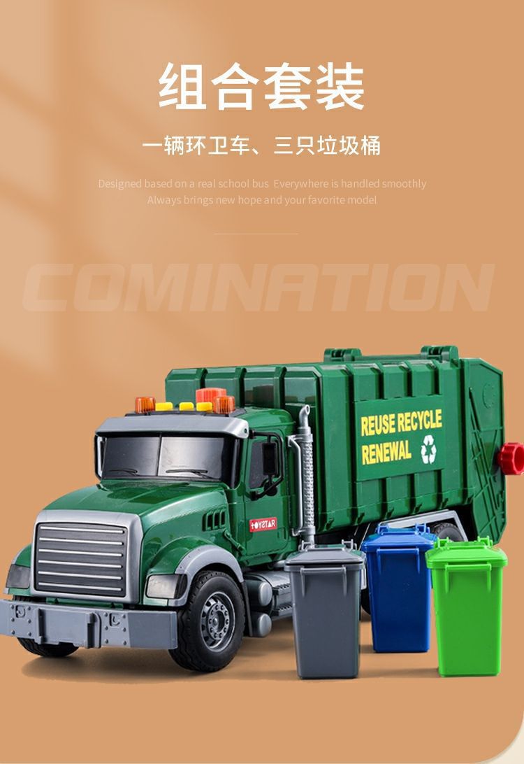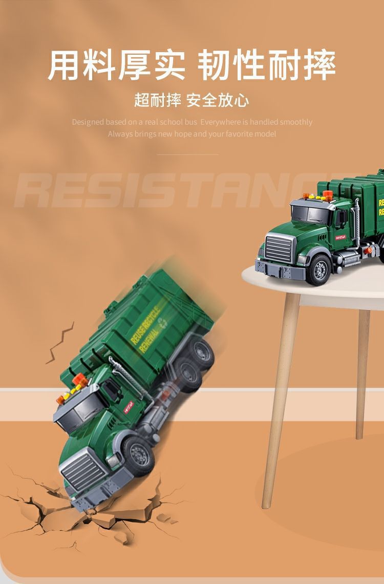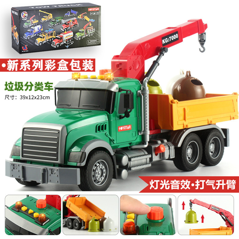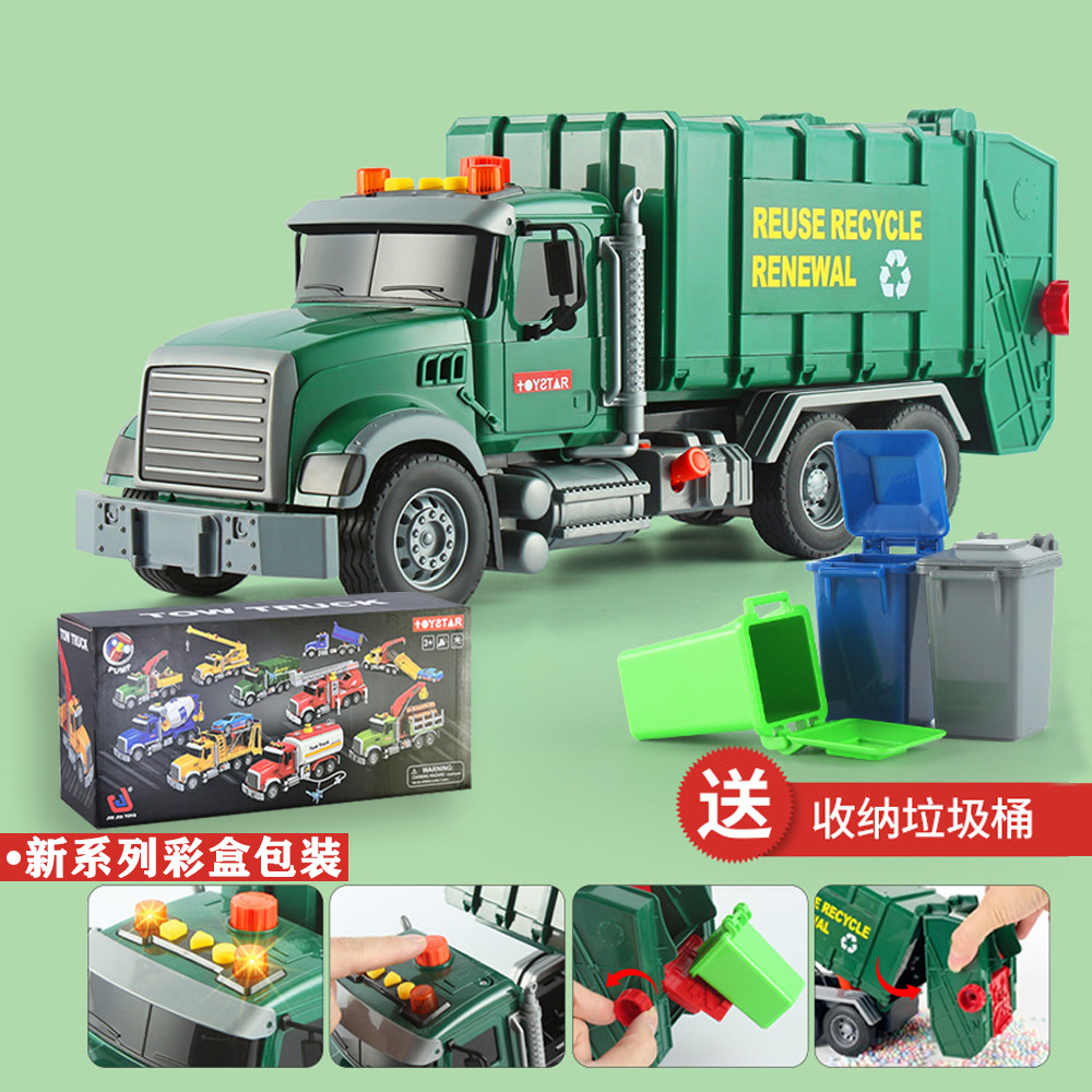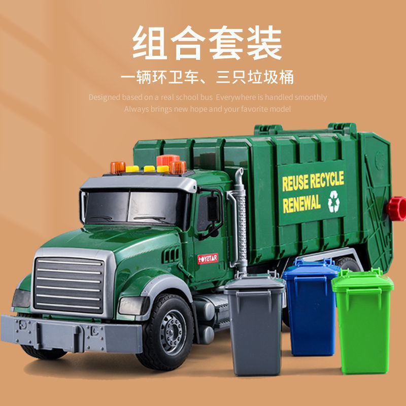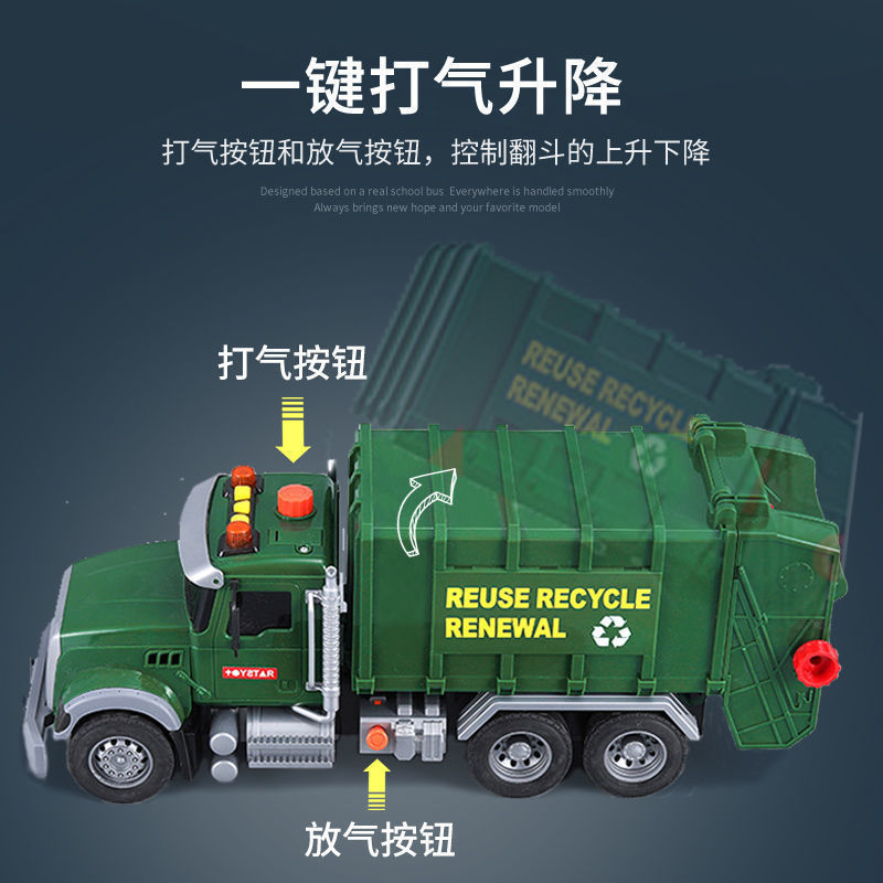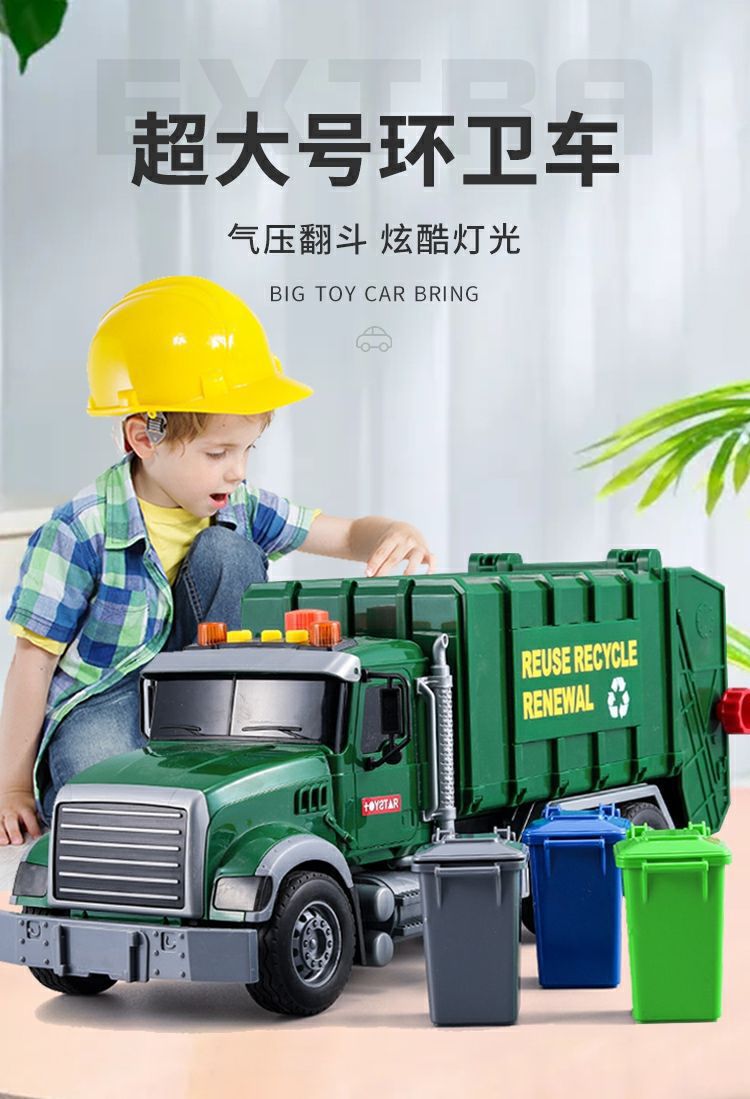 跨境垃圾车环卫车超大号工程车打气升降仿真垃圾分类套装3岁6男孩