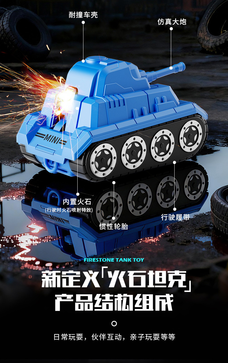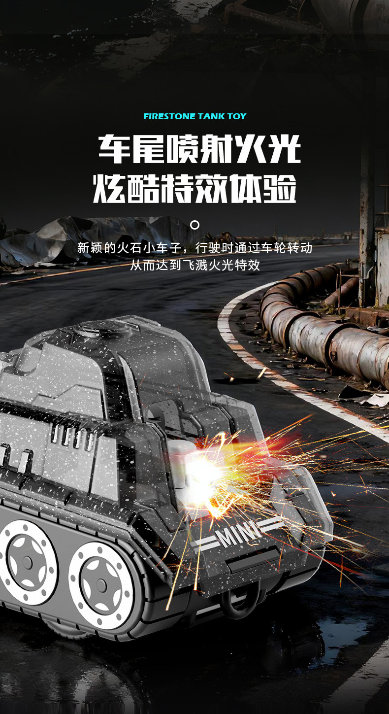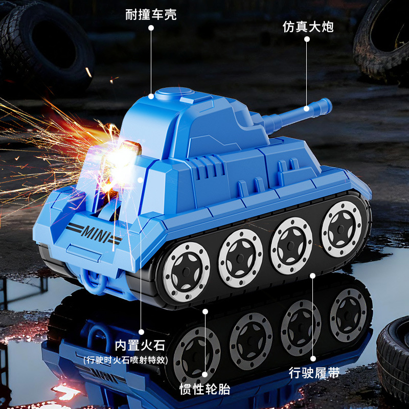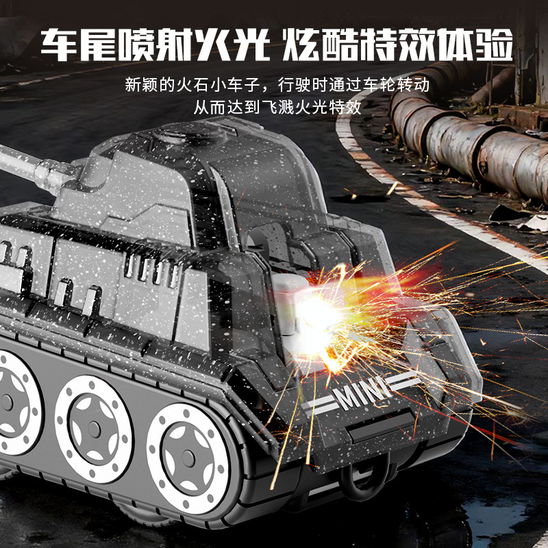 火花坦克车炫酷特技火石惯性坦克回力滑行机车迷你仿真坦克车玩具