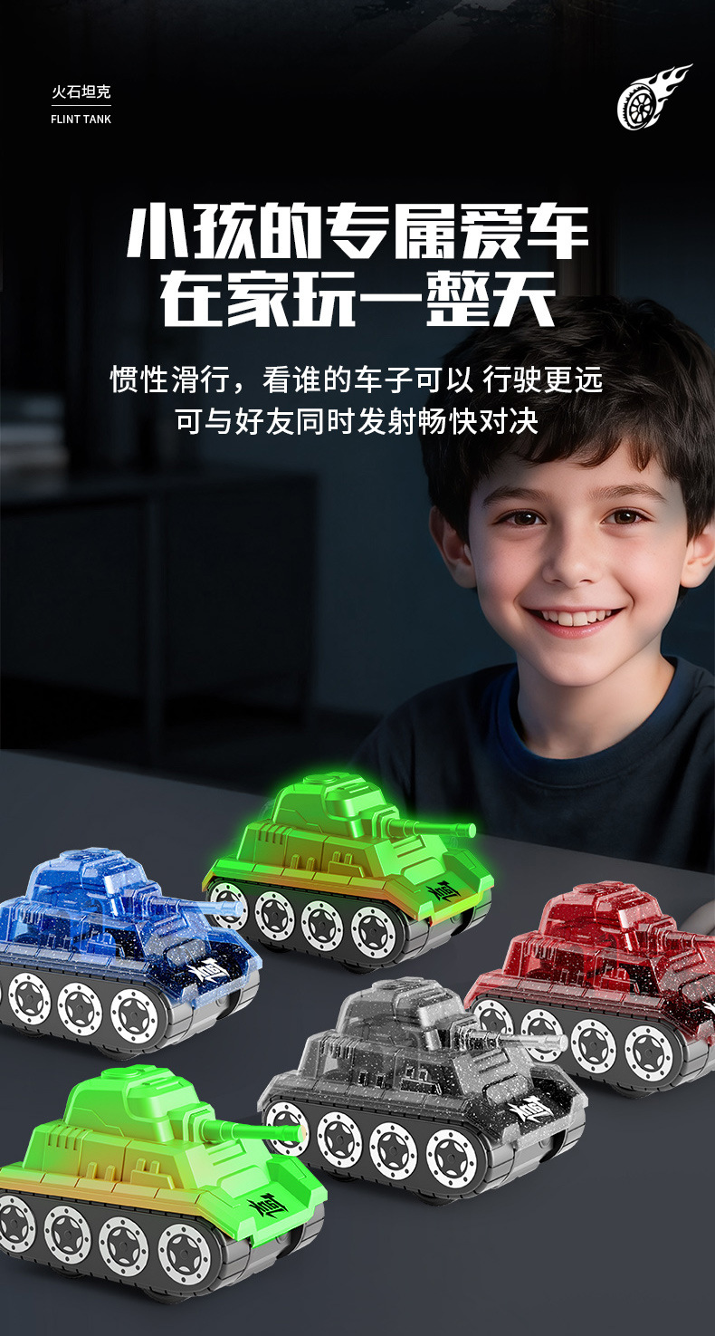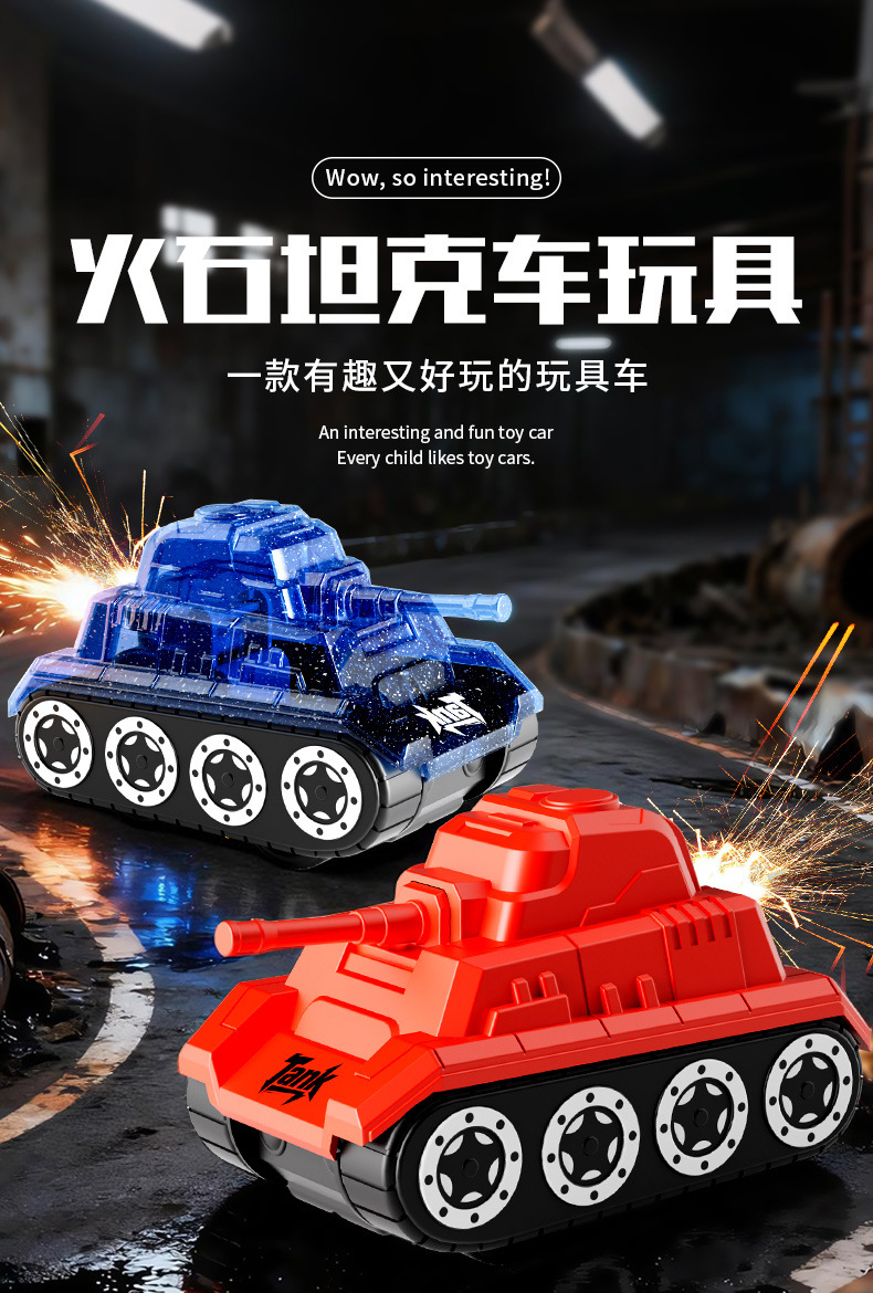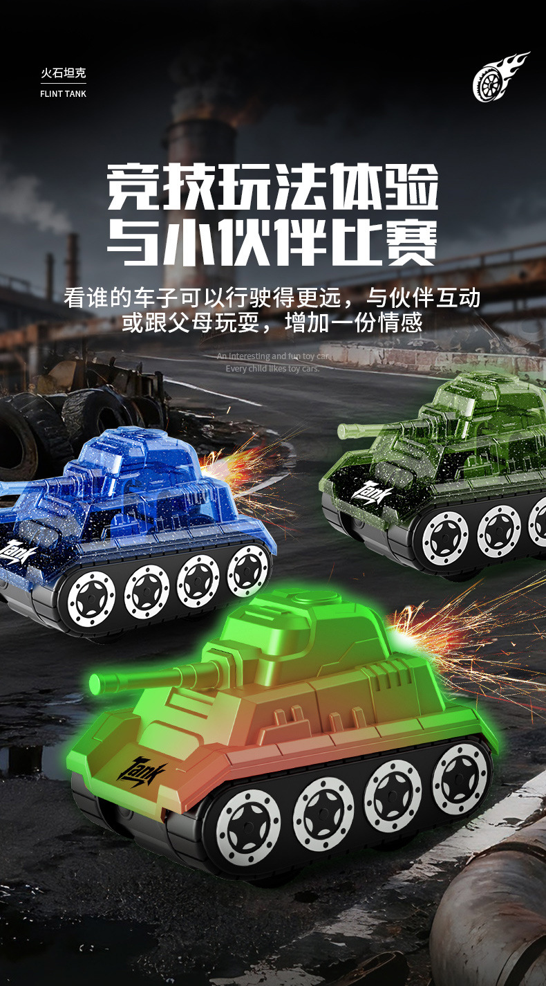 火花坦克车炫酷特技火石惯性坦克回力滑行机车迷你仿真坦克车玩具