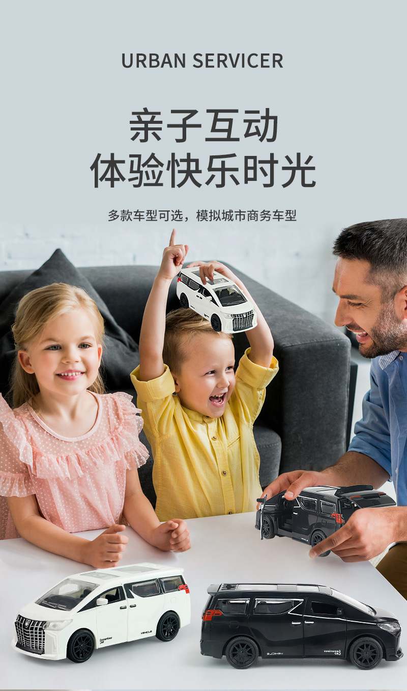 多开门埃尔法车模儿童惯性音乐玩具车豪华MPV商务车宝宝小汽车