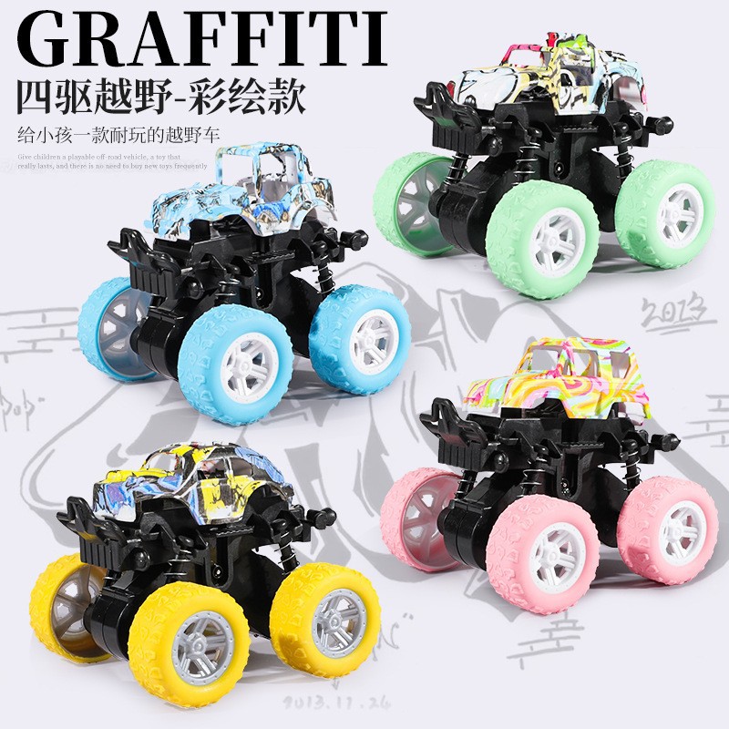 惯性四驱彩绘越野车儿童男孩模型车大轮特技玩具车小汽车