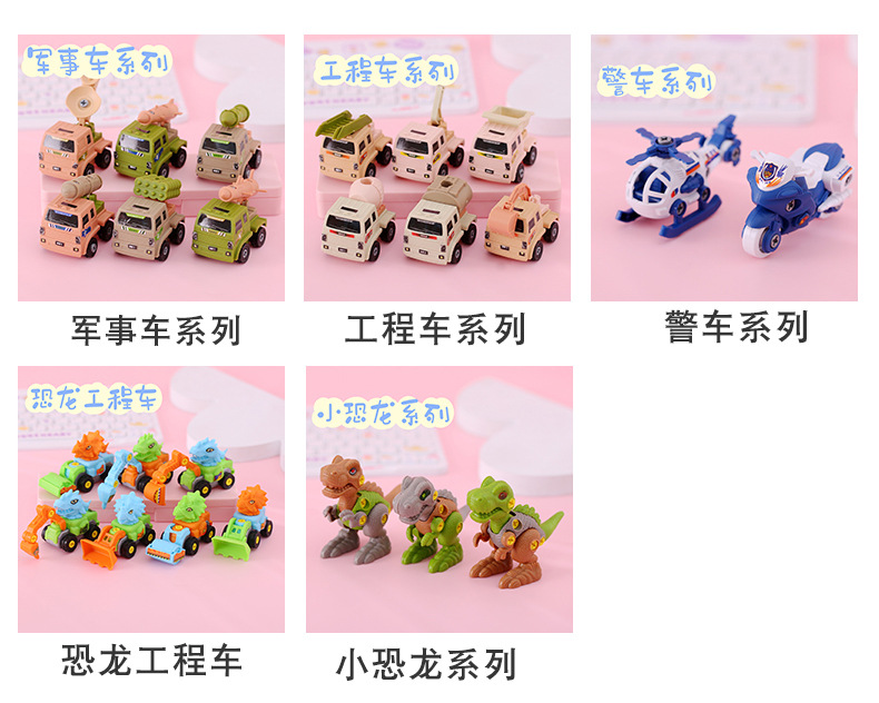 地摊拼装小车迷你小号工程车军事汽车恐龙惯性回力车