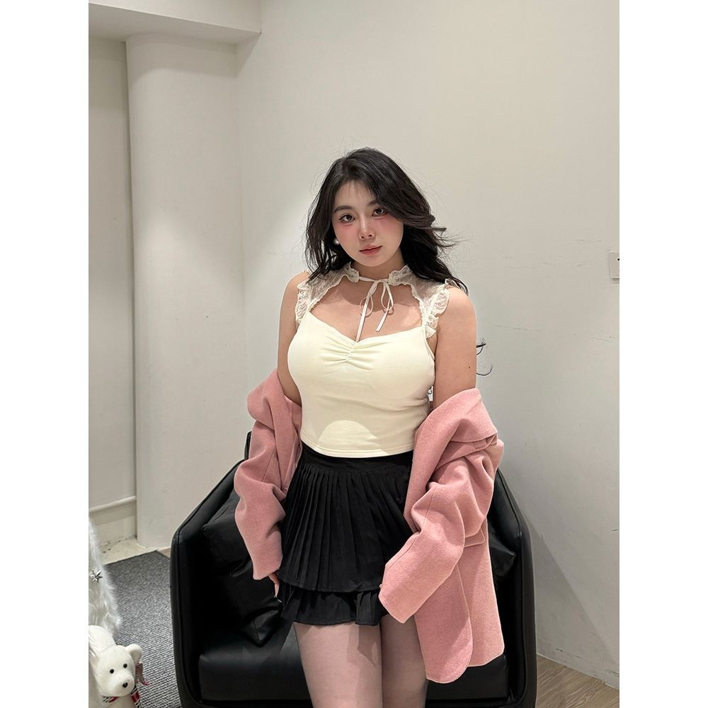 2025年夏季新款纯欲风性感白色拼蕾丝挂脖吊带背心女