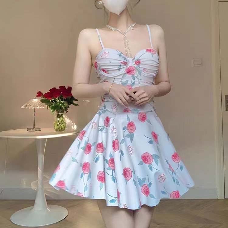 【夏日阳光】新款游泳衣女连体平角保守遮肚裙式温泉少女泳装