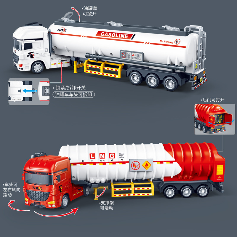 大号油罐车惯性男孩天然气重型拖头石油运输车儿童玩具车仿真模型