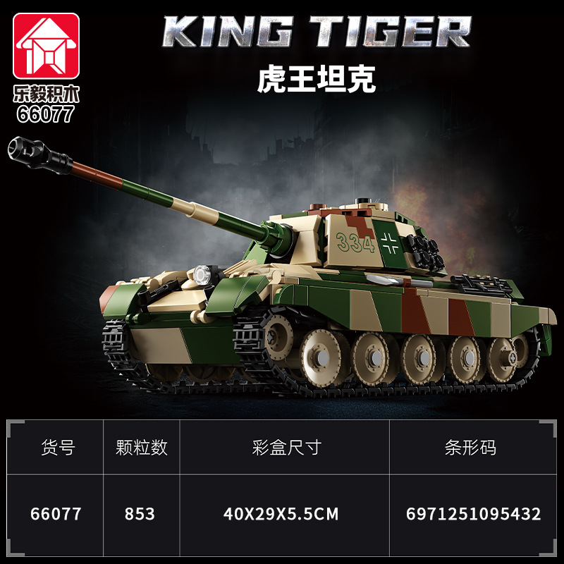 二战德国虎式坦克积木重型迷彩装甲车国产拼装军事模型男孩玩具