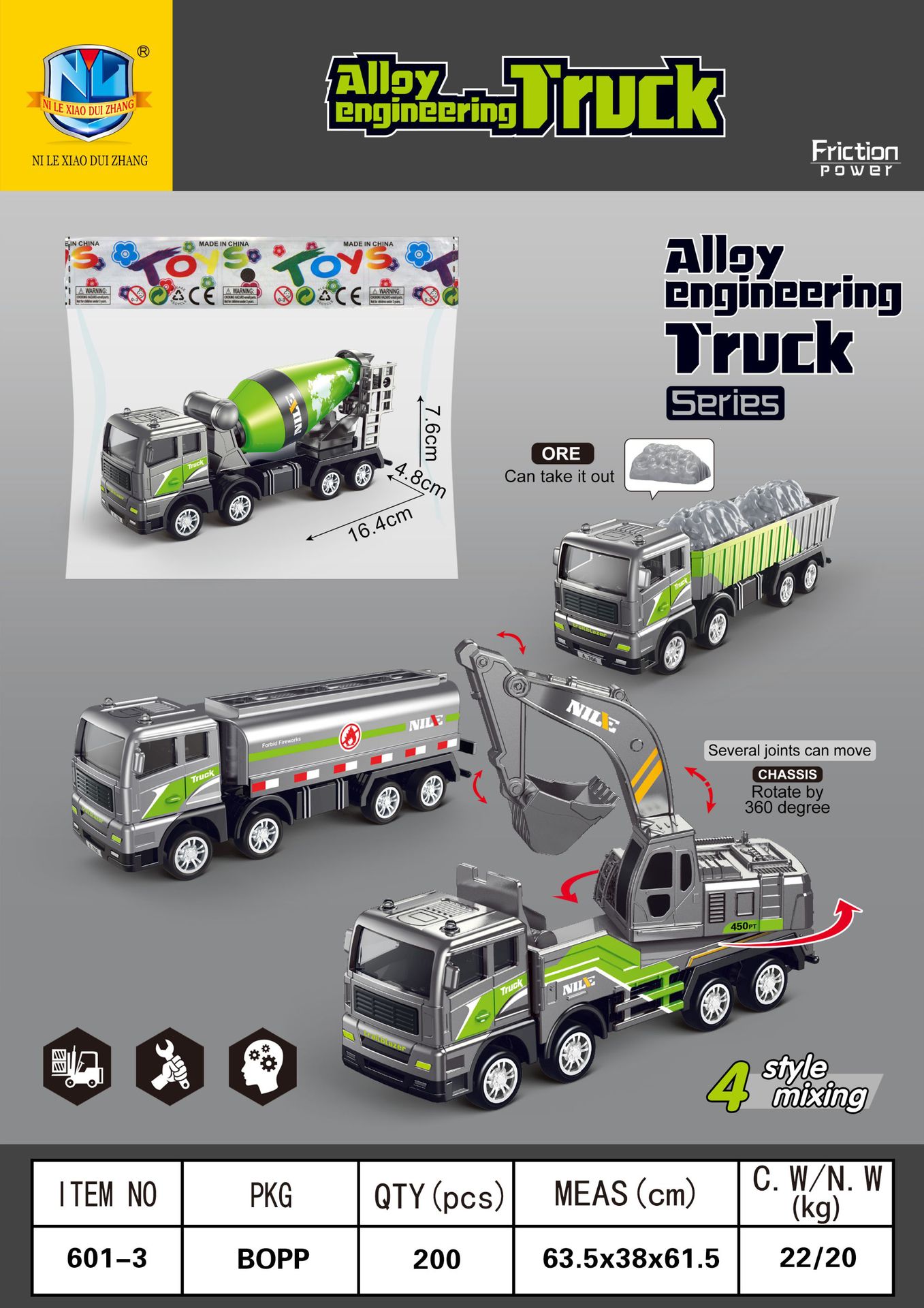 惯性合金工程车系列男孩挖掘机搅拌车油罐车卡车推土机玩具3-6岁