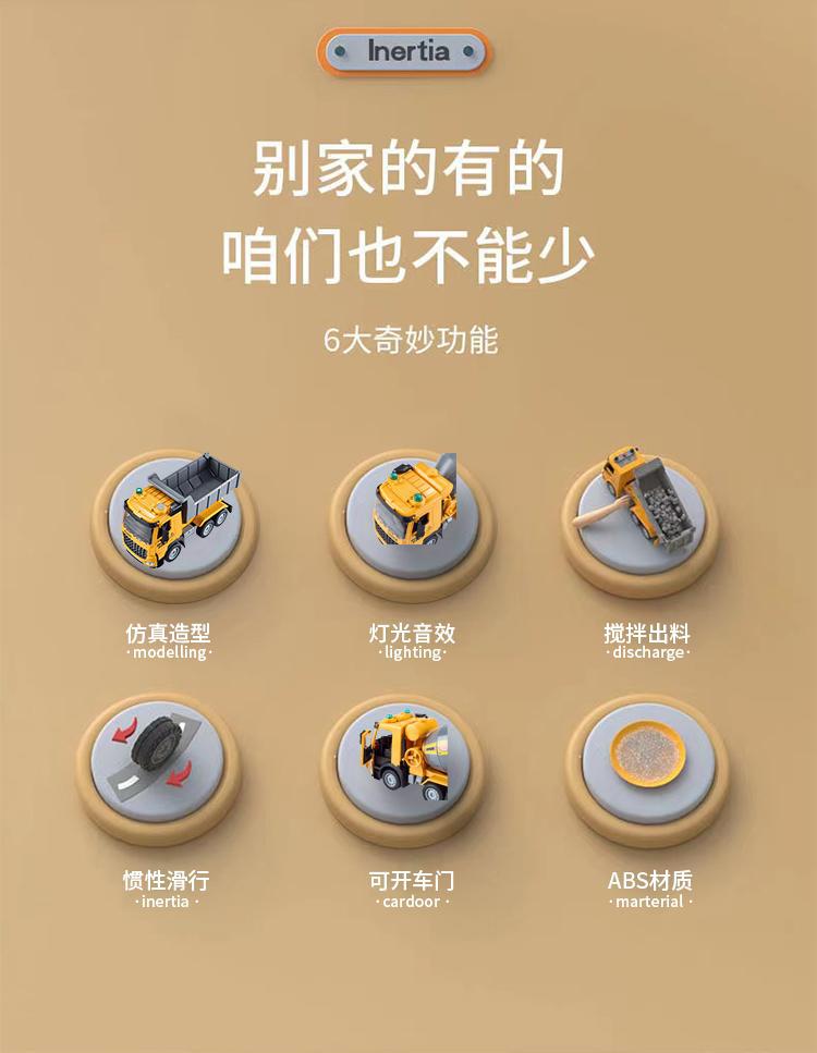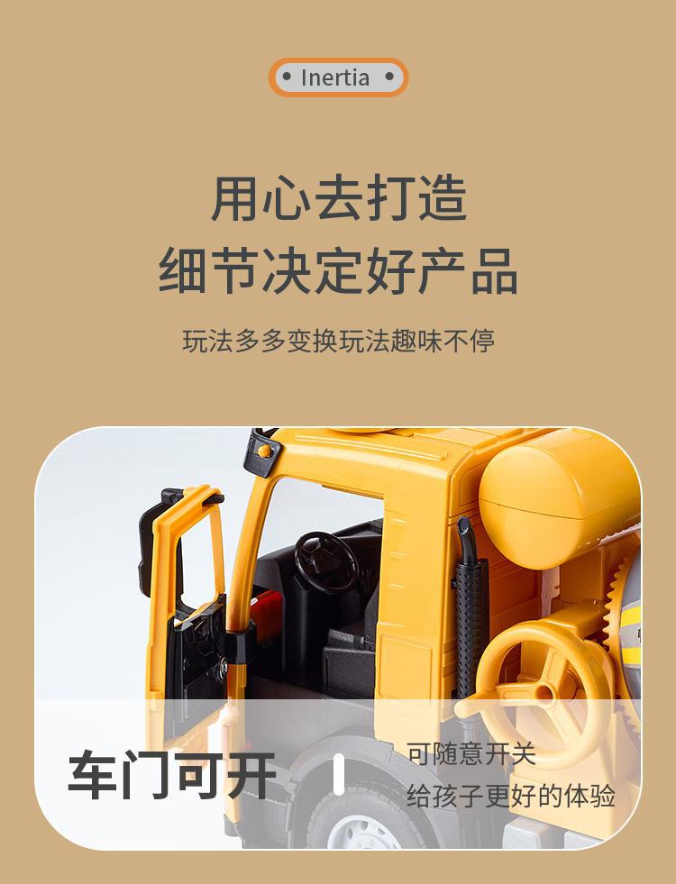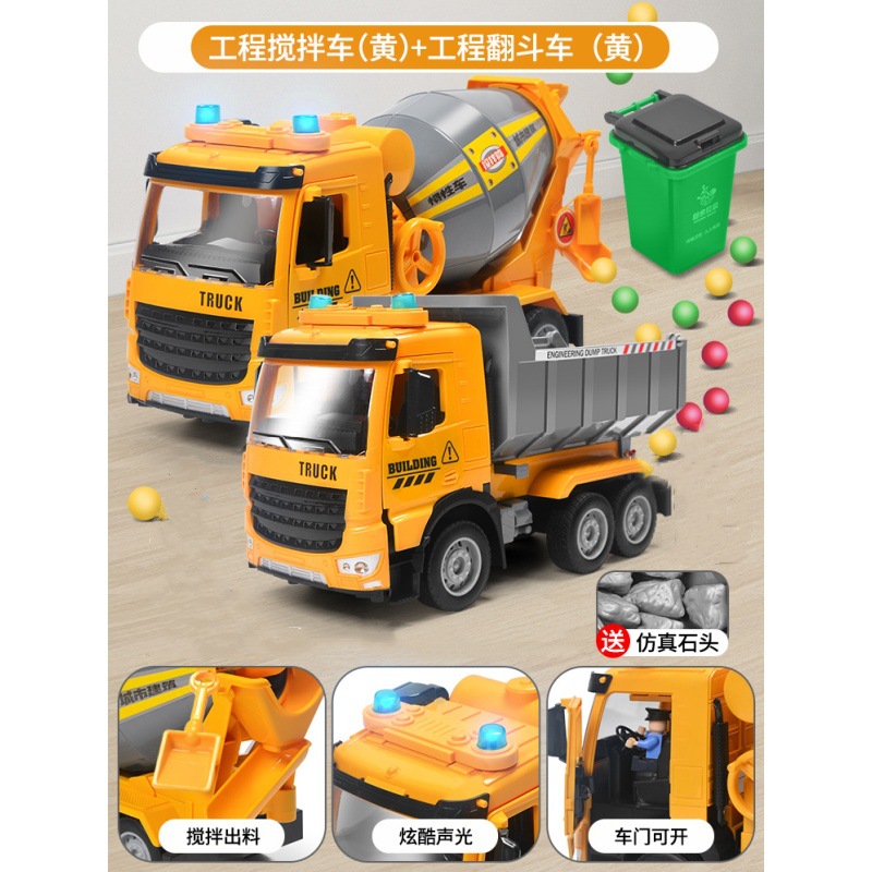 【31CM】搅拌车(黄)+【28CM】翻斗车配【桶+彩豆+仿真塑石】
