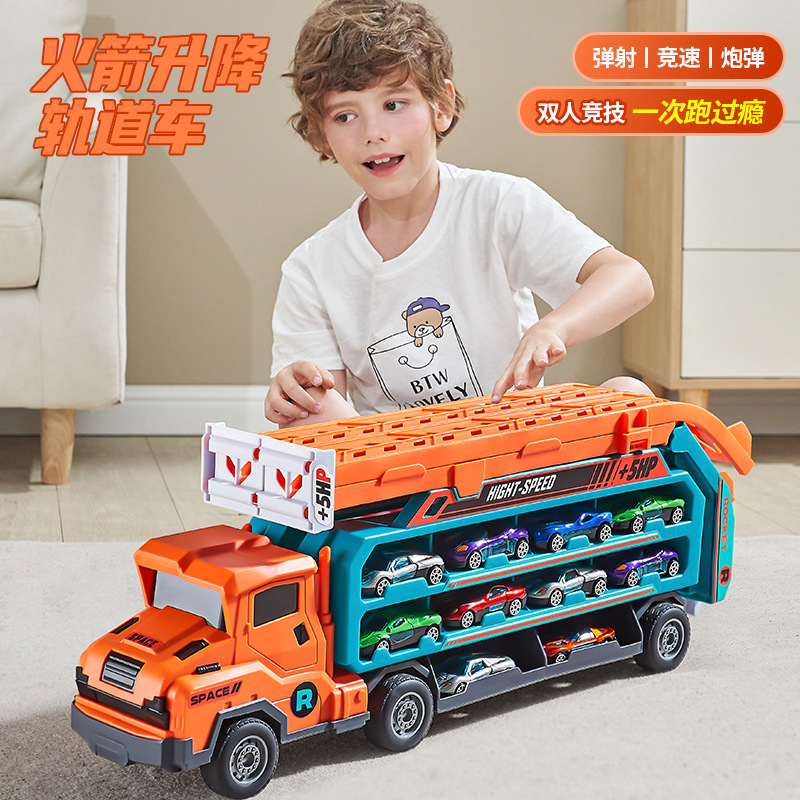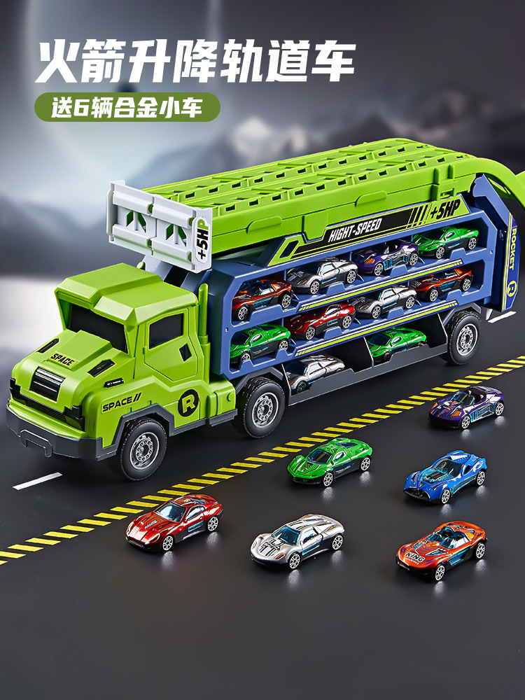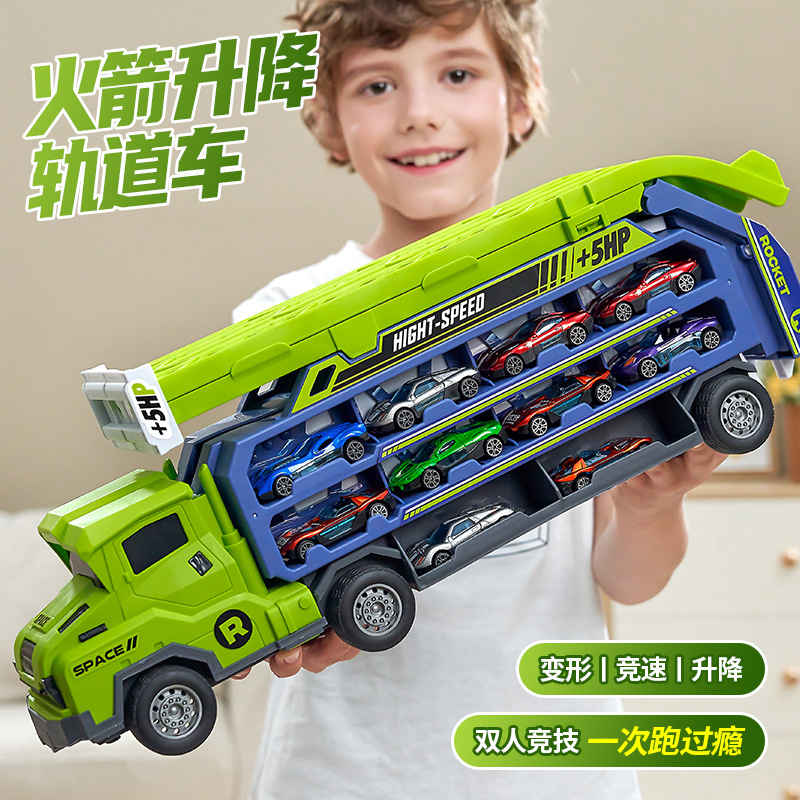 惯性变形滑翔升降火箭轨道车可收纳折叠货运大卡车合金小汽车