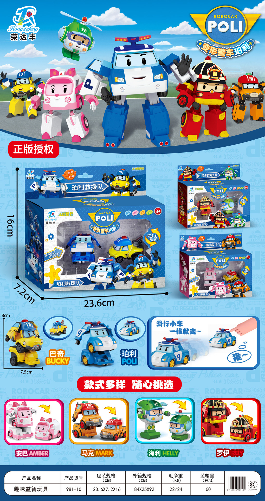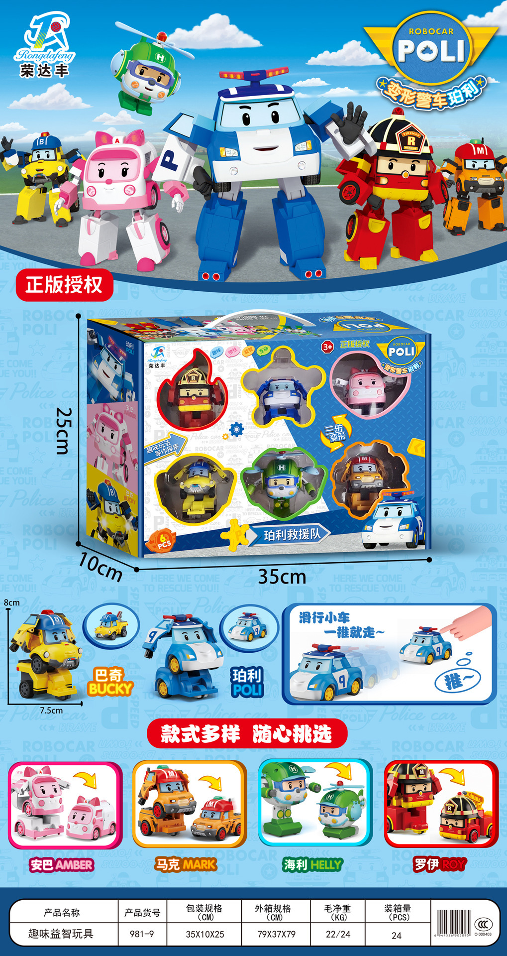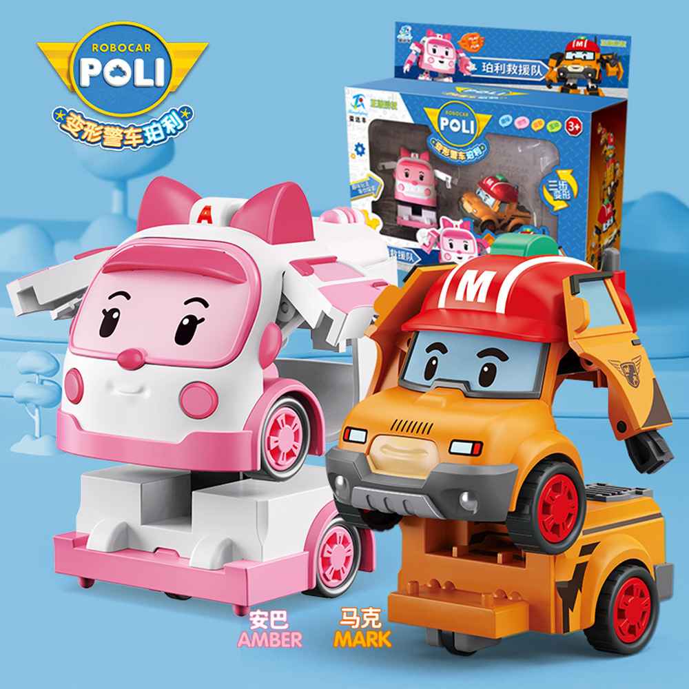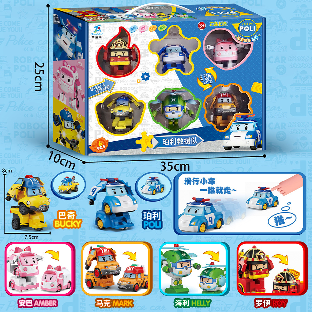 珀利变形机器人惯性儿童玩具车益智玩具男孩卡通救援队模型