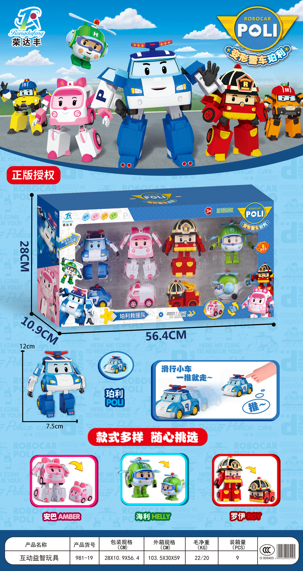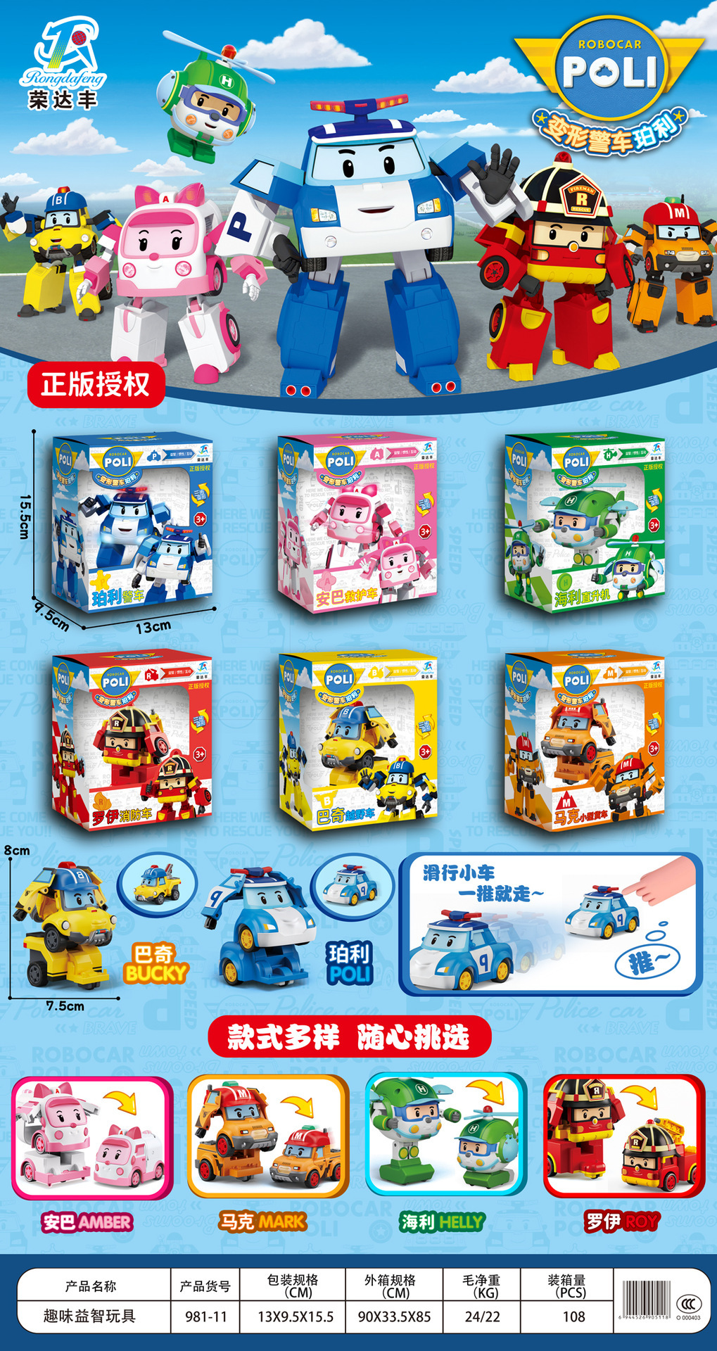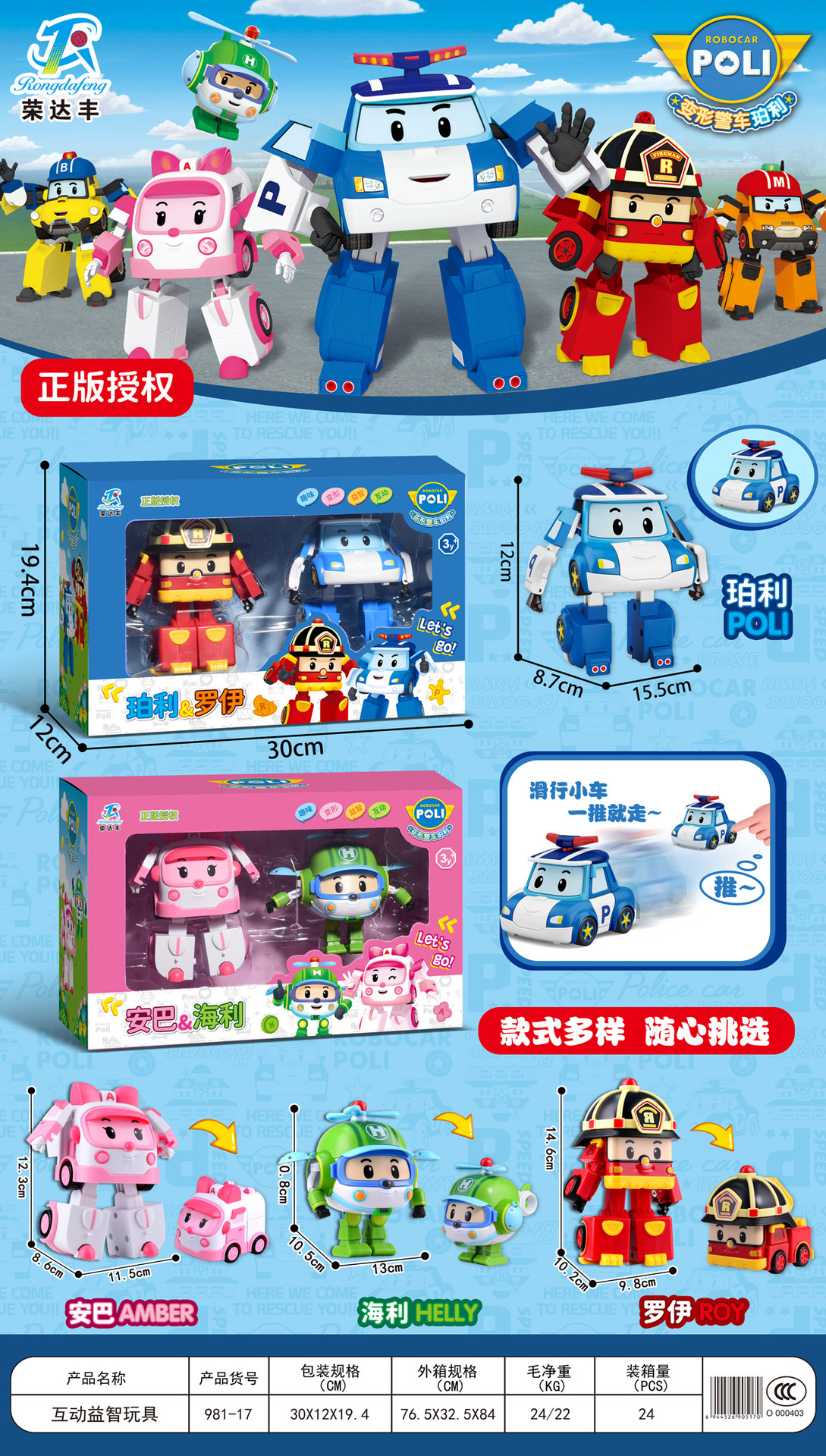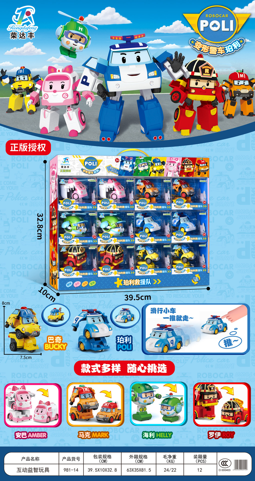 珀利变形机器人惯性儿童玩具车益智玩具男孩卡通救援队模型