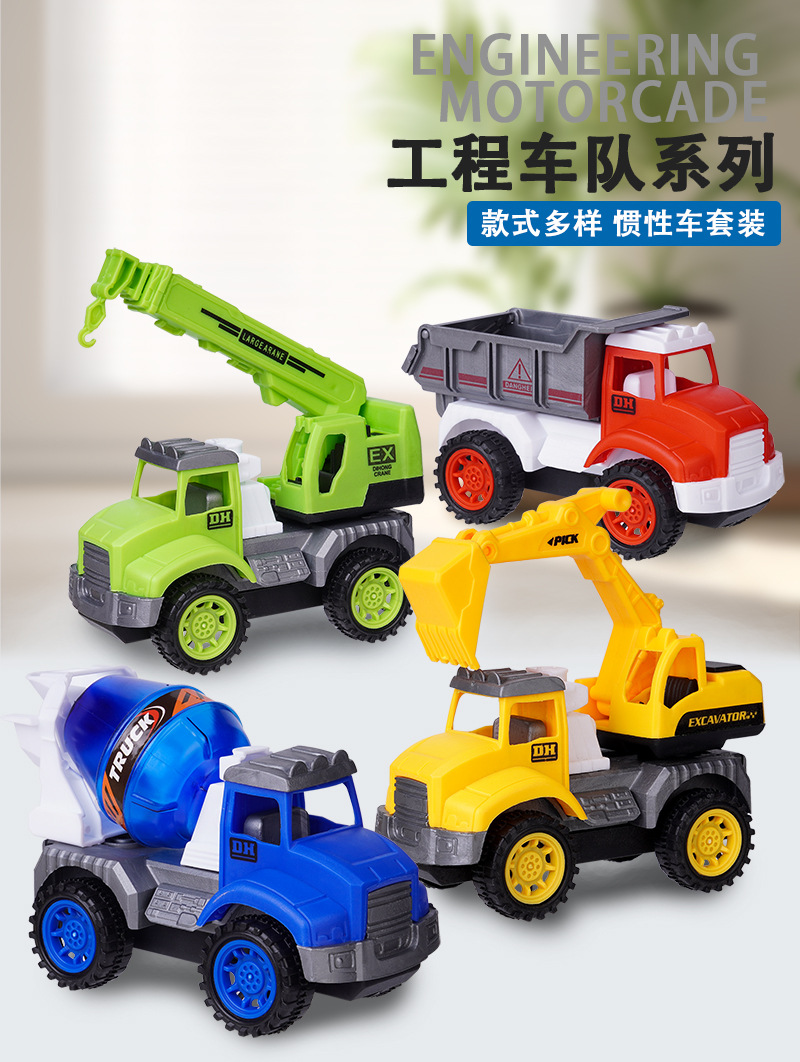 儿童玩具车惯性小汽车消防车工程车仿真挖掘机翻斗车模型套装地摊