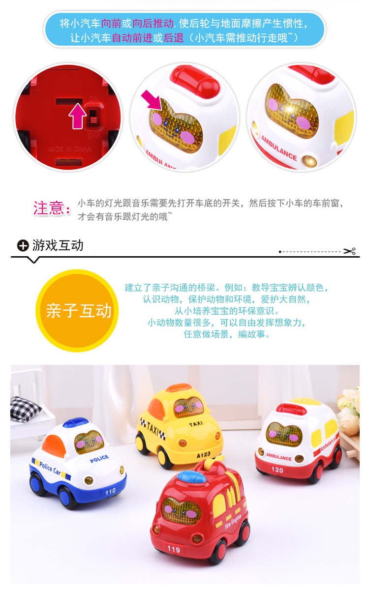 儿童玩具车惯性小汽车婴儿益智学爬音乐声光玩具0-3岁可优比同款