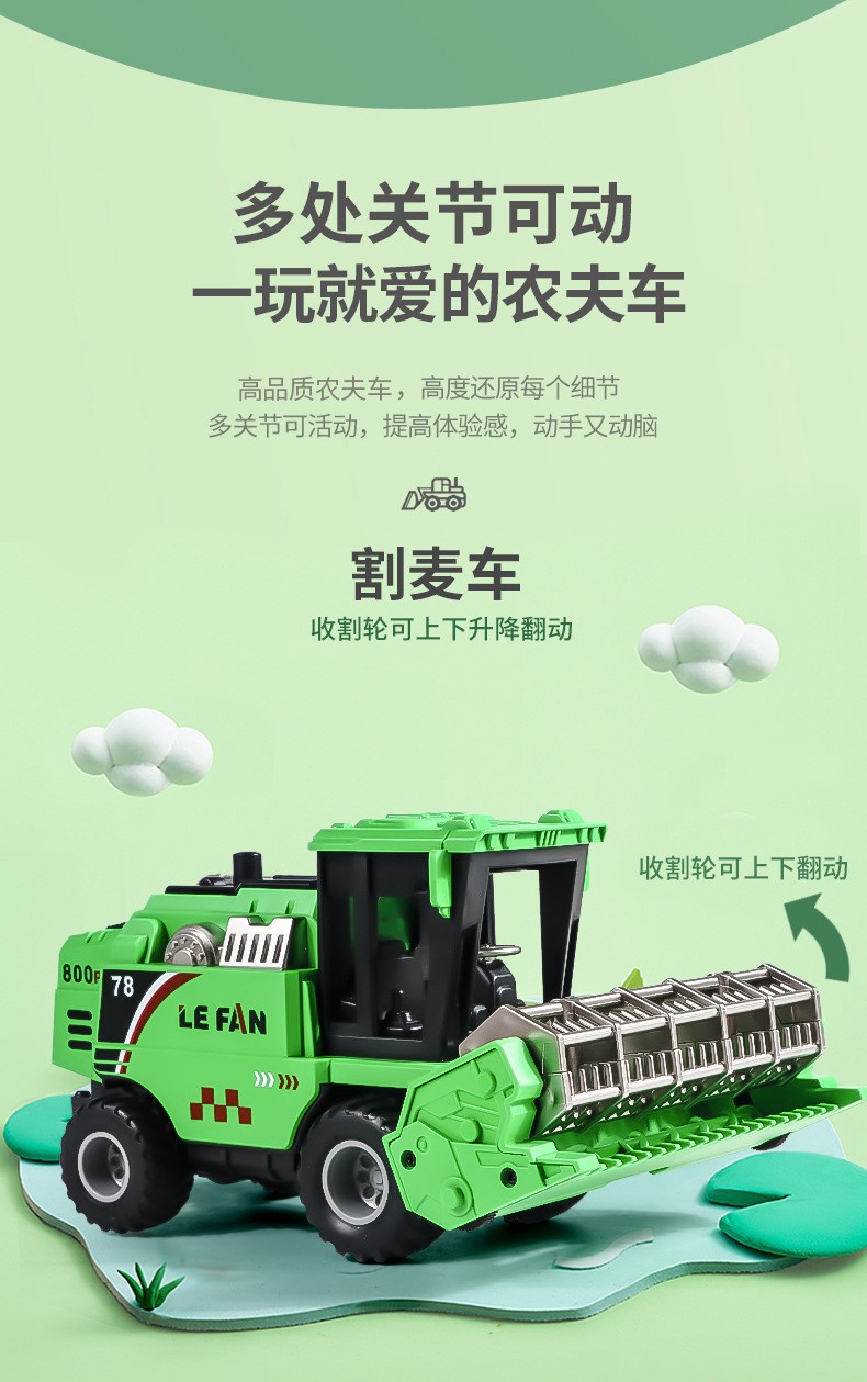 儿童按压惯性趣味收割机男孩防撞耐摔仿真工程车模型玩具