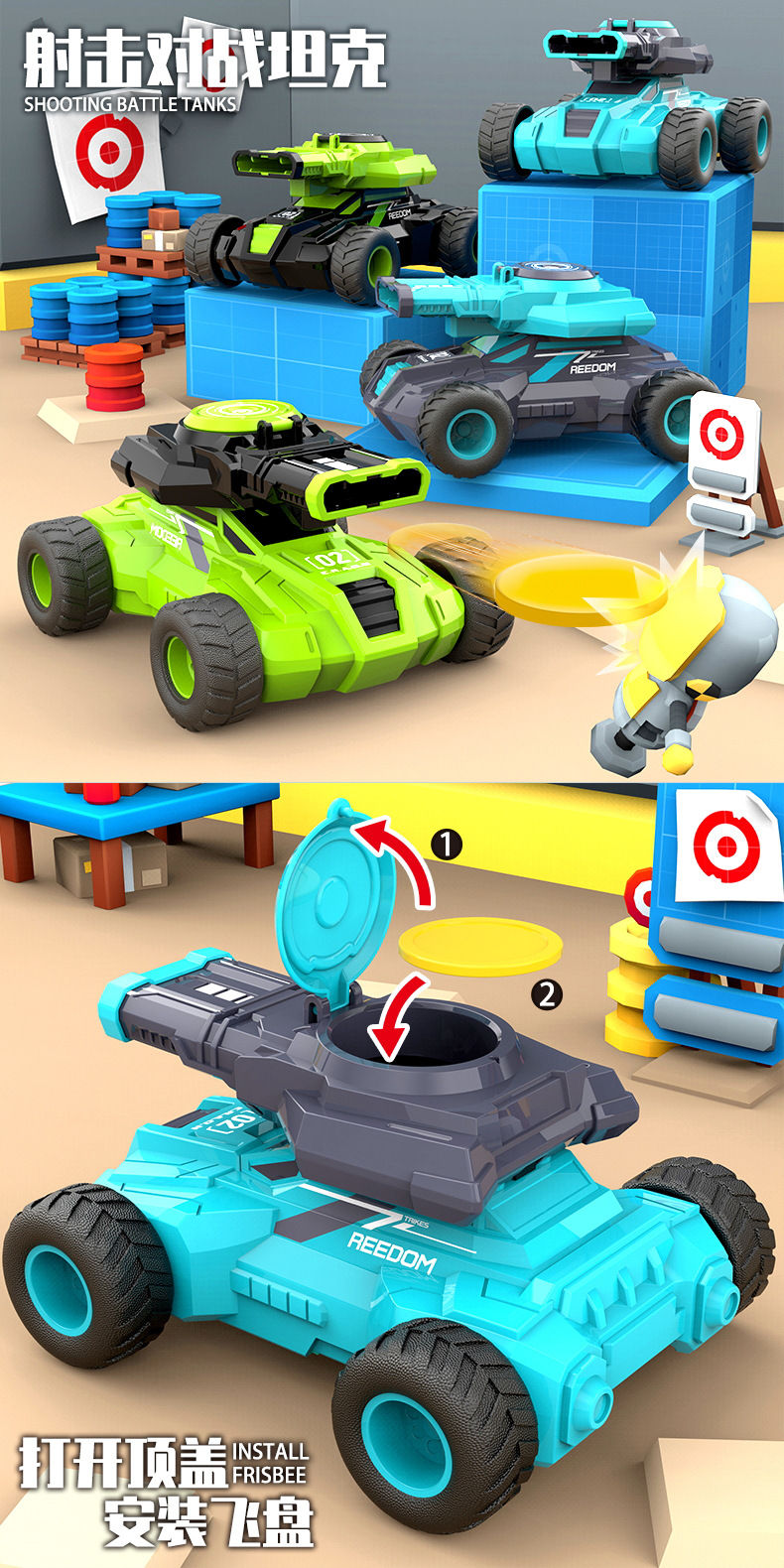 弹射坦克【迷彩随机色2只】+8发射盘(随机发)