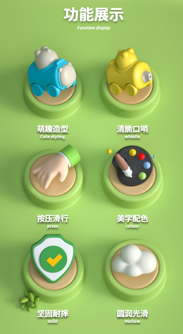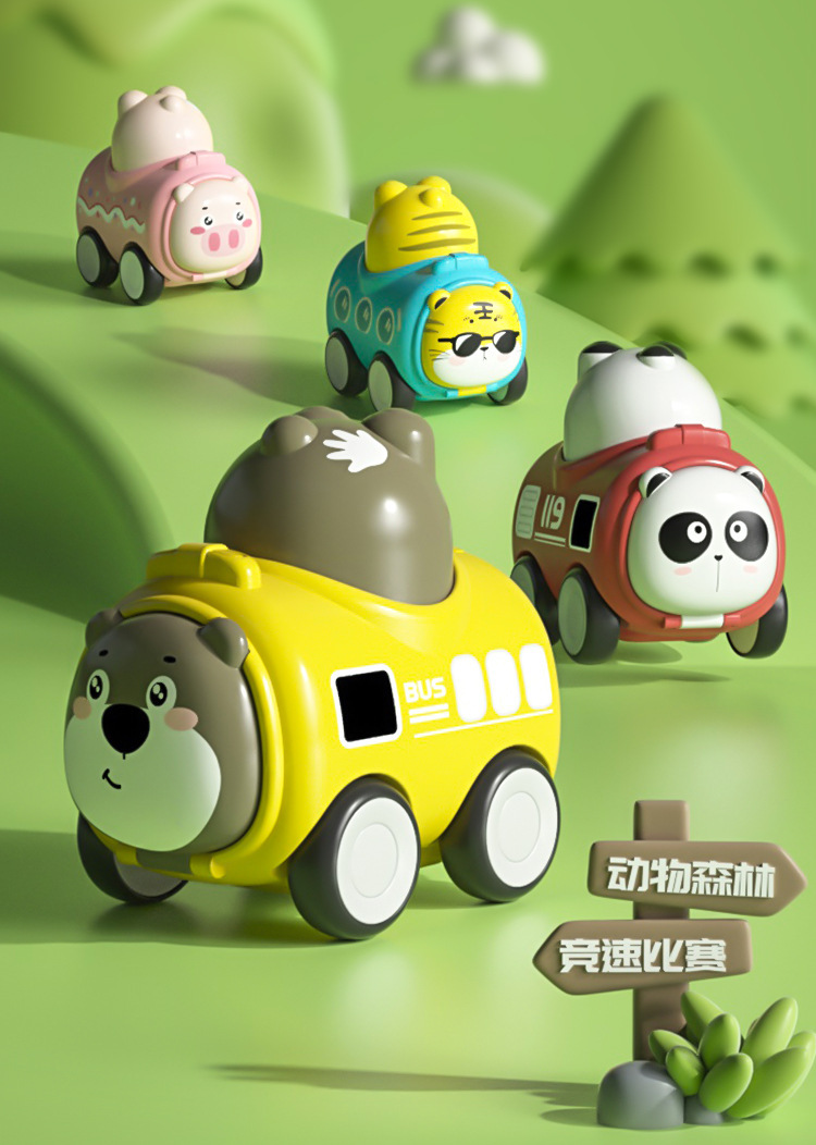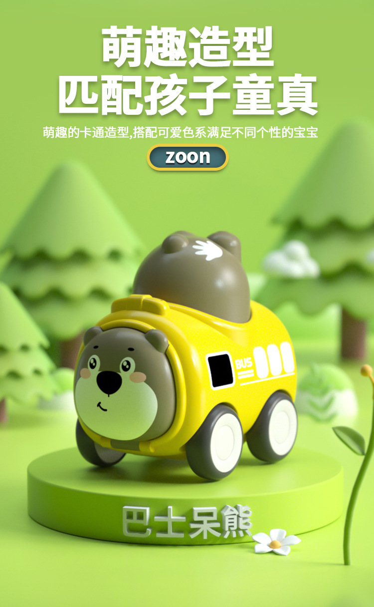 萌趣玩具屁屁按压男孩惯性动物小汽车女孩宝宝卡通耐摔熊猫按压车