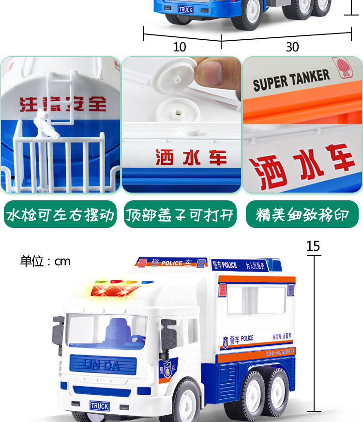 林达洒水车工程车惯性儿童玩具男孩子宝宝汽车模型玩具