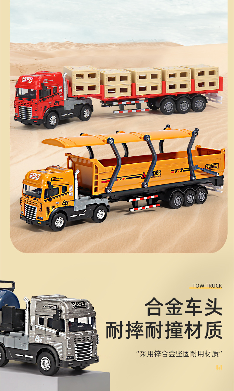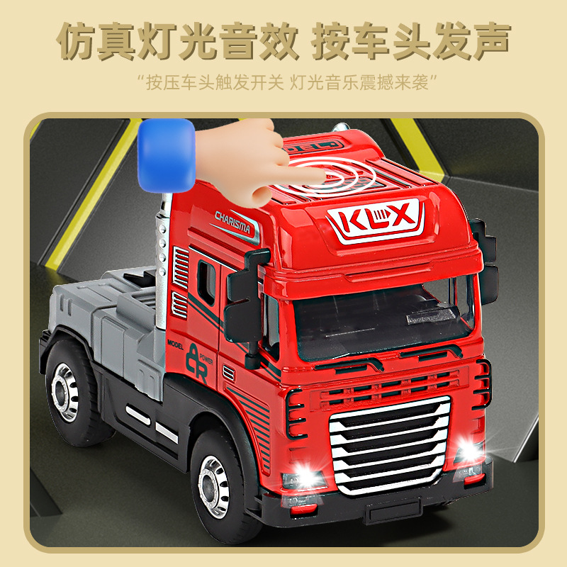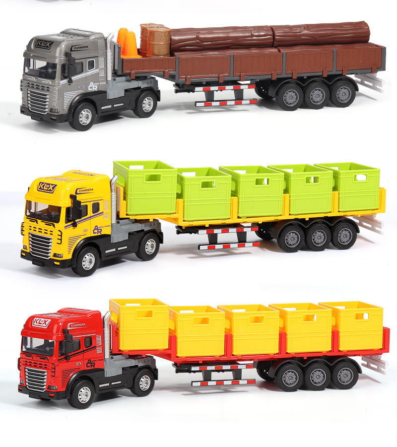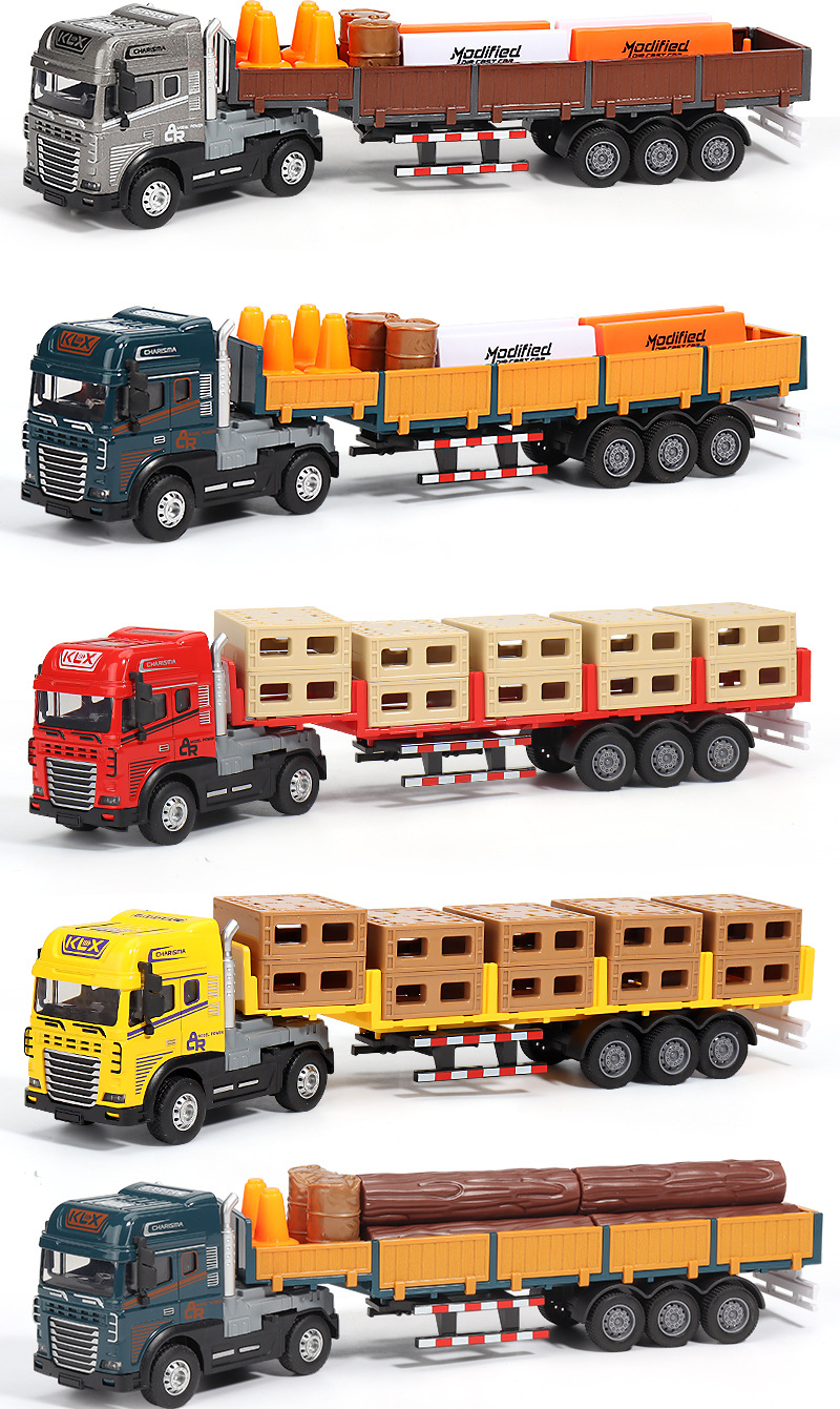 儿童惯性合金声光运输拖车玩具工程车仿真平板半挂车运载车