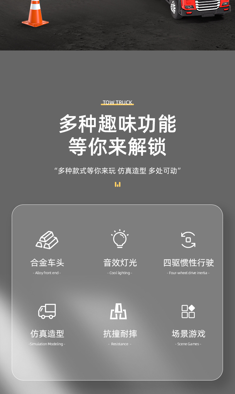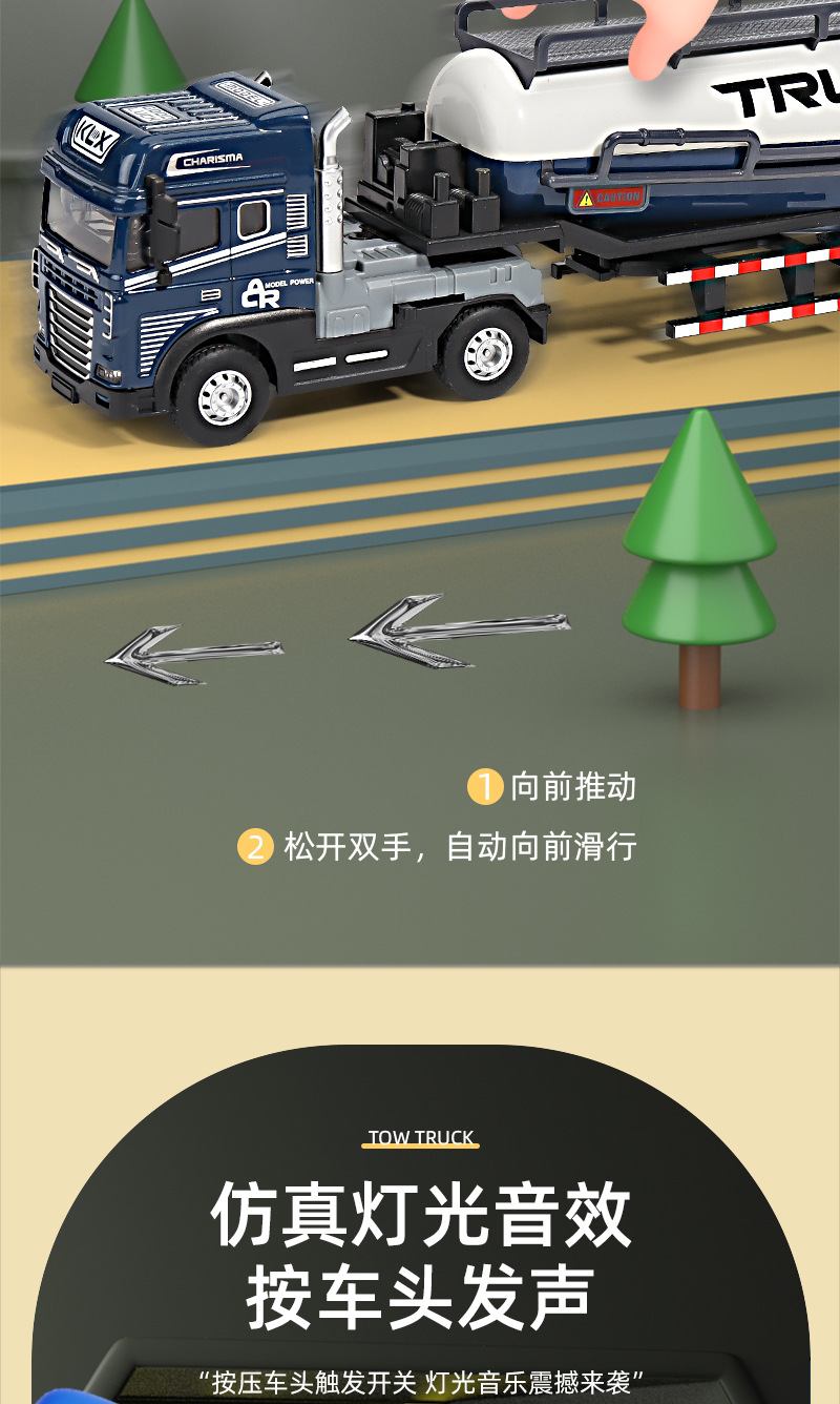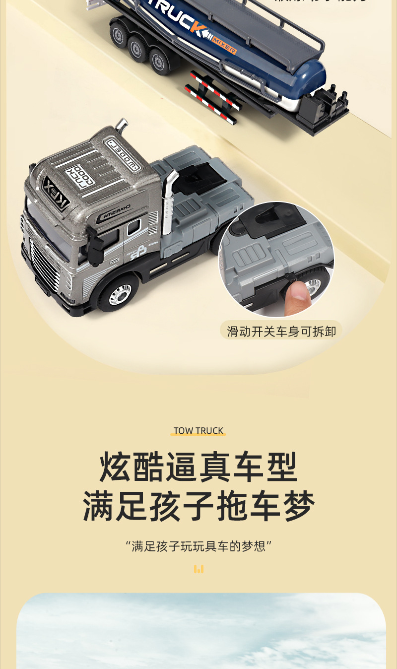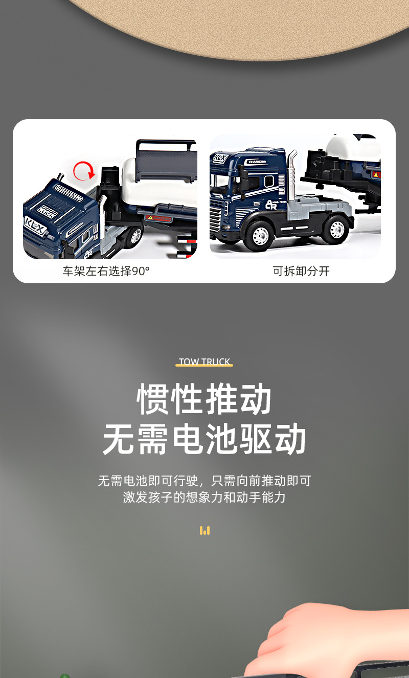 儿童惯性合金声光运输拖车玩具工程车仿真平板半挂车运载车