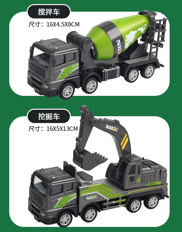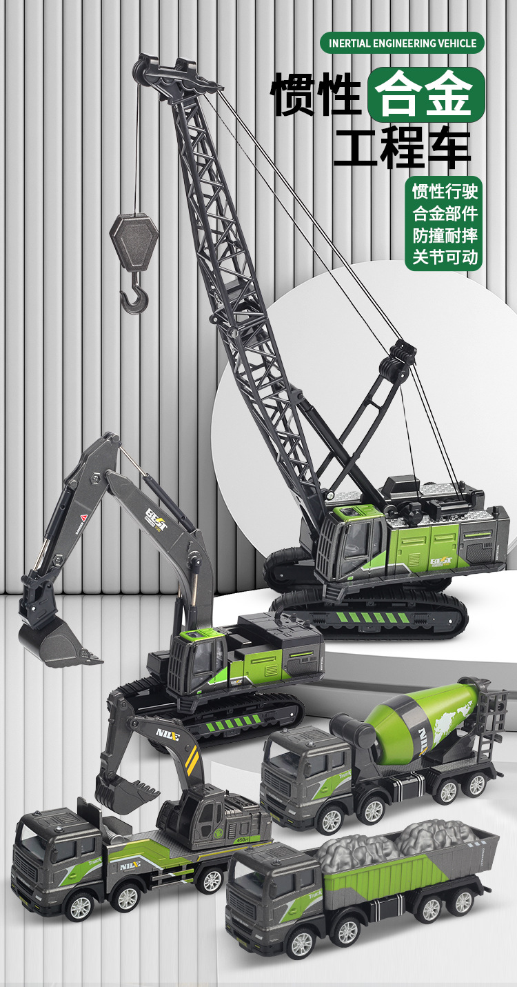 儿童合金惯性工程车挖掘机挖土推土机男孩玩具车模型玩具汽车套装