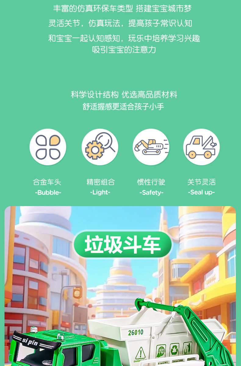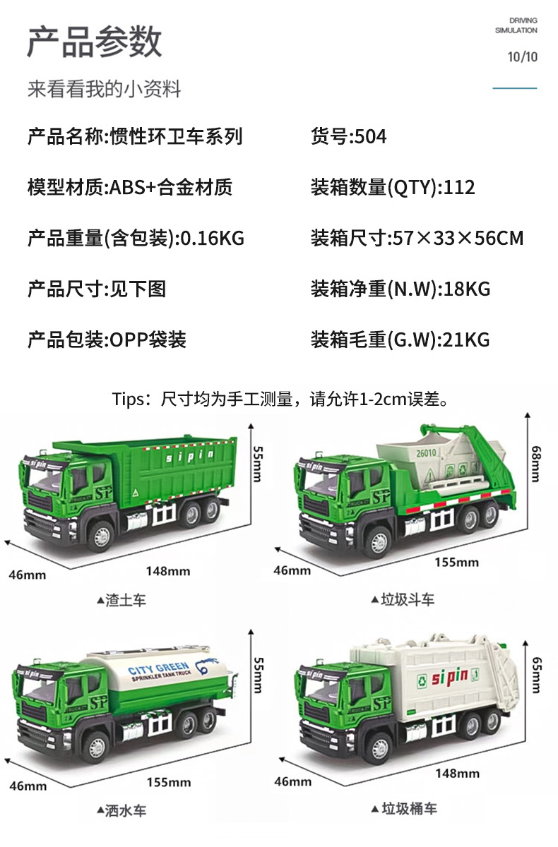 合金仿真惯性运输车城市道路洁翻斗车男孩玩具儿童环卫垃圾车