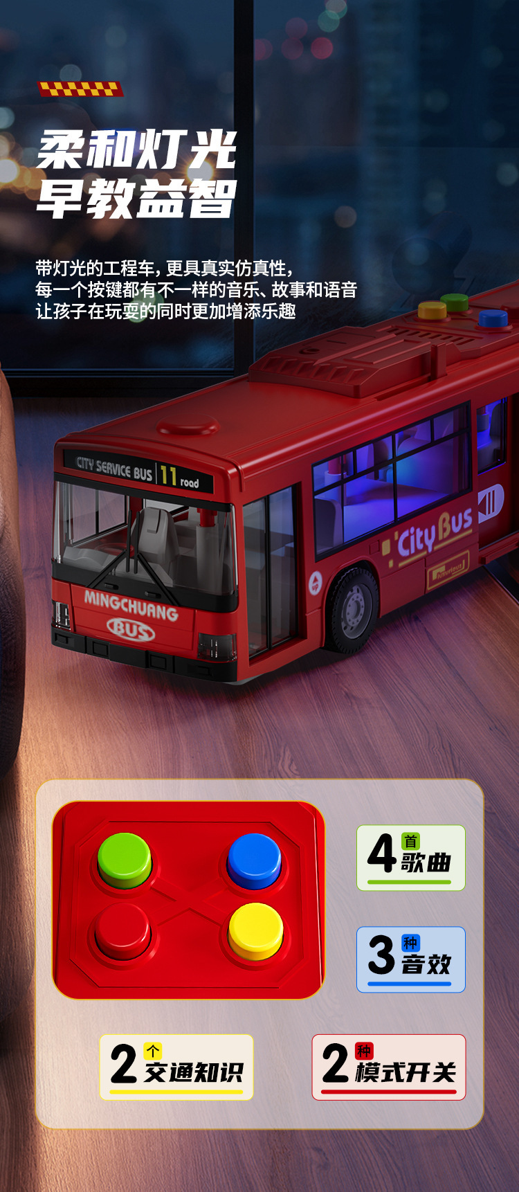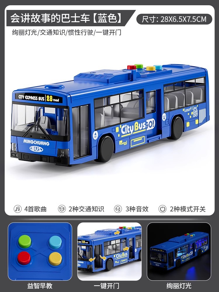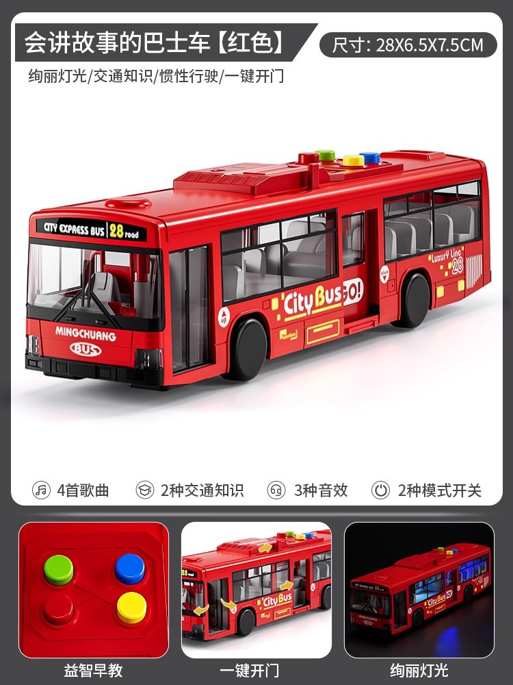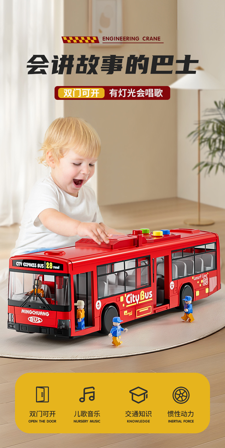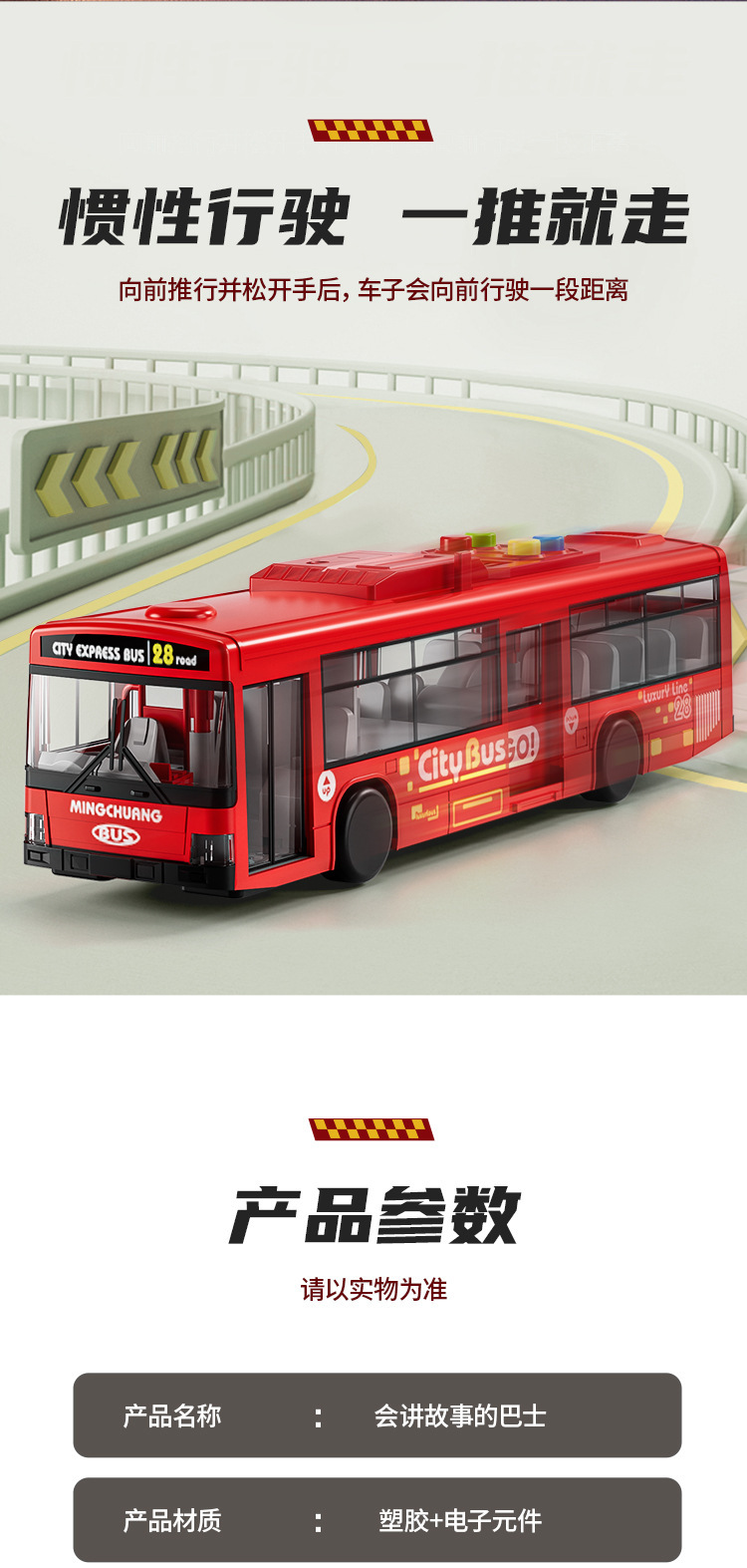 跨境儿童惯性巴士车灯光音乐早教故事宝宝公交车模型益智玩具汽车