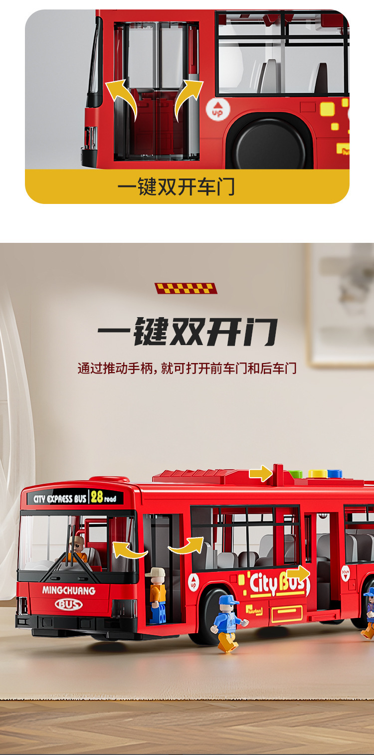 红色-一键开门-灯光-音乐-故事巴士车+2随机人偶