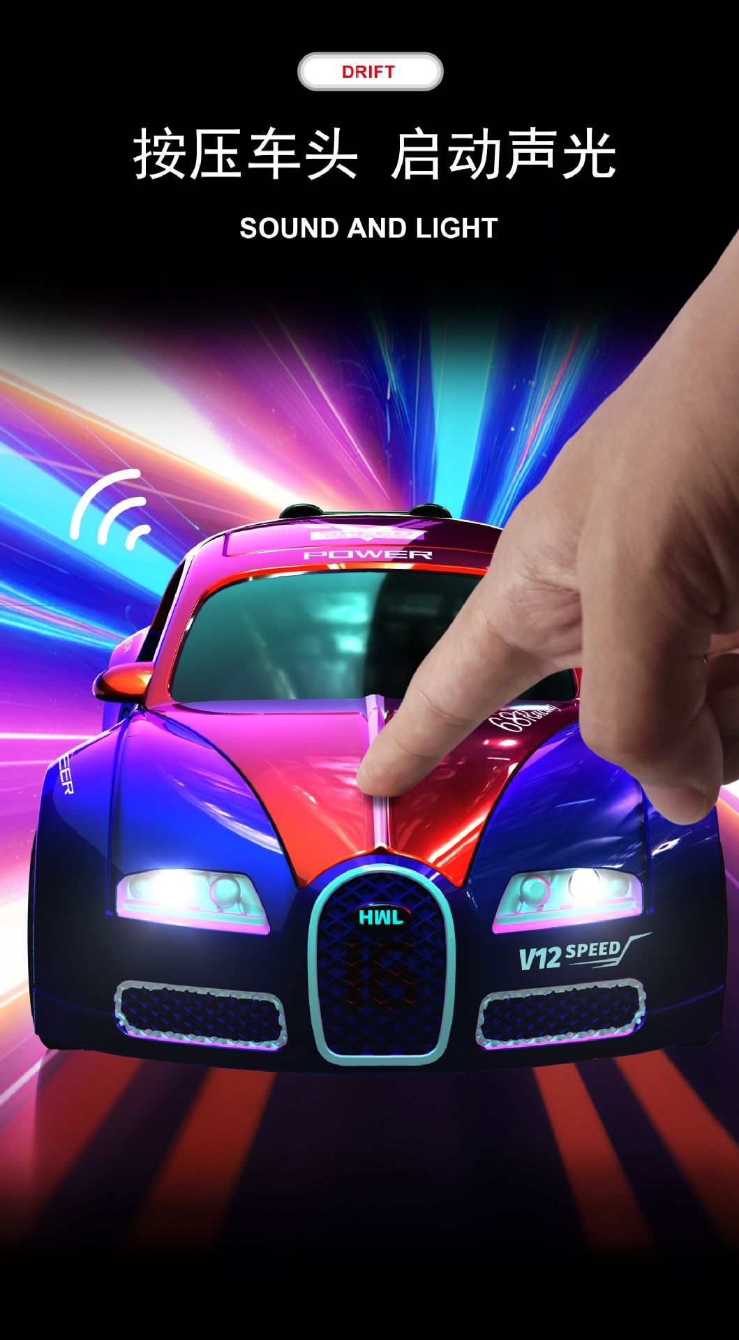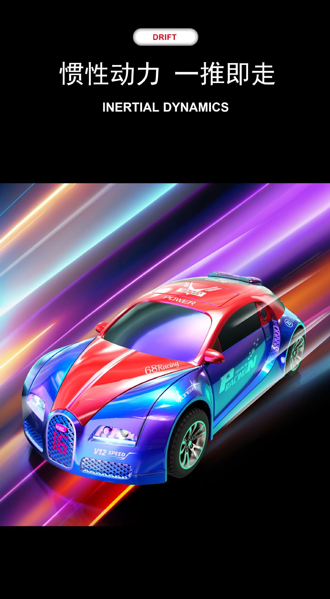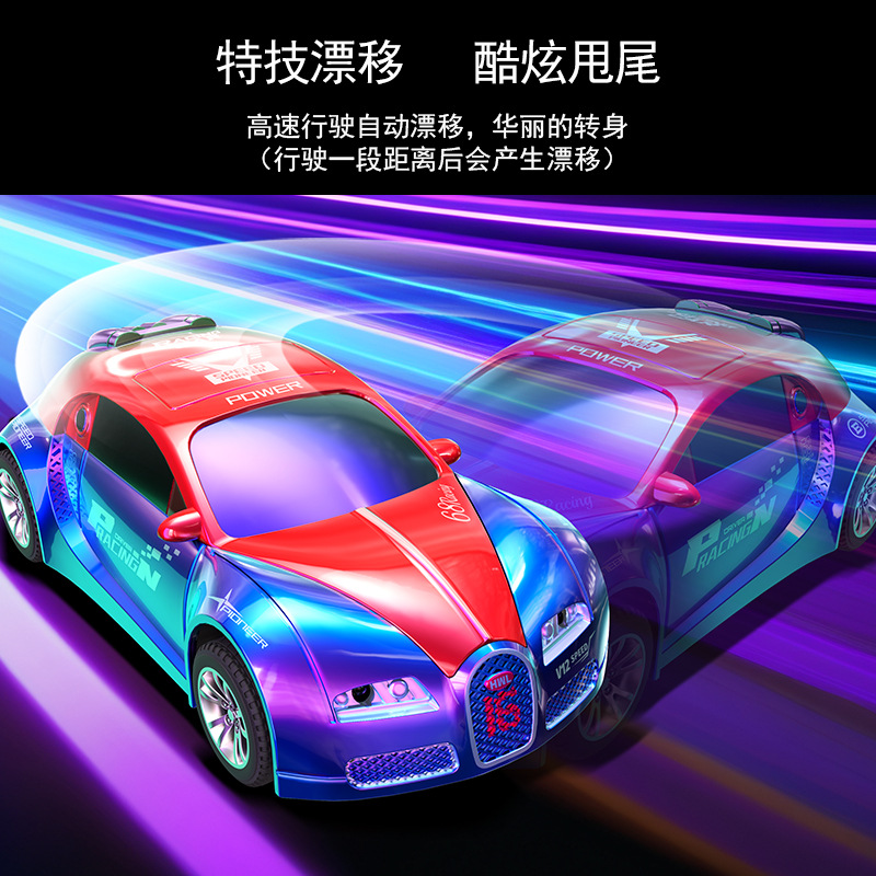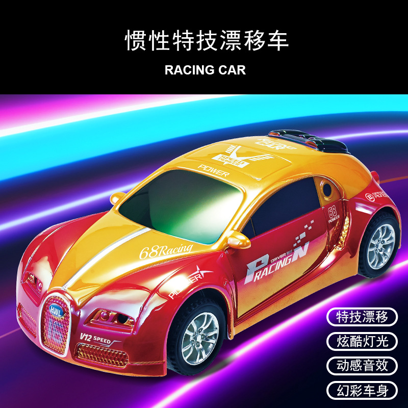儿童炫彩惯性小汽车耐摔特技漂移车旋转仿真跑车模型声光漂移赛车