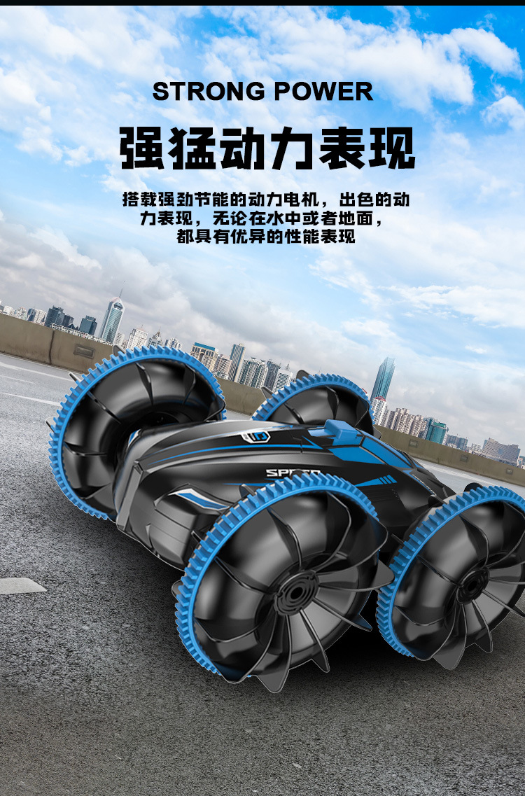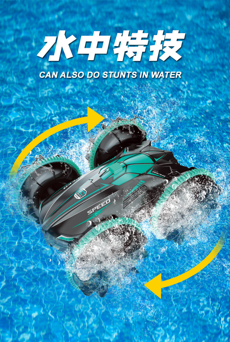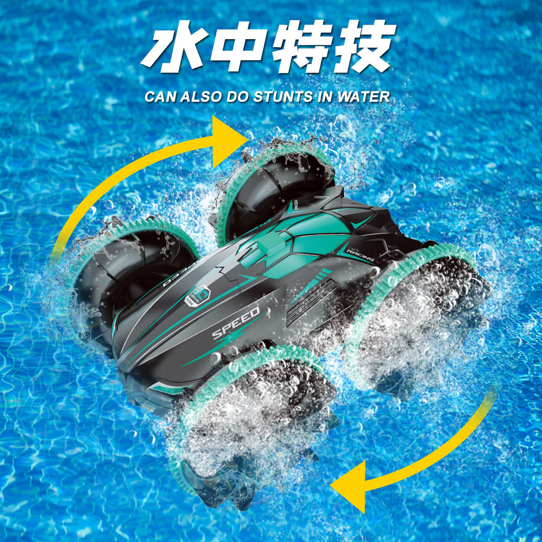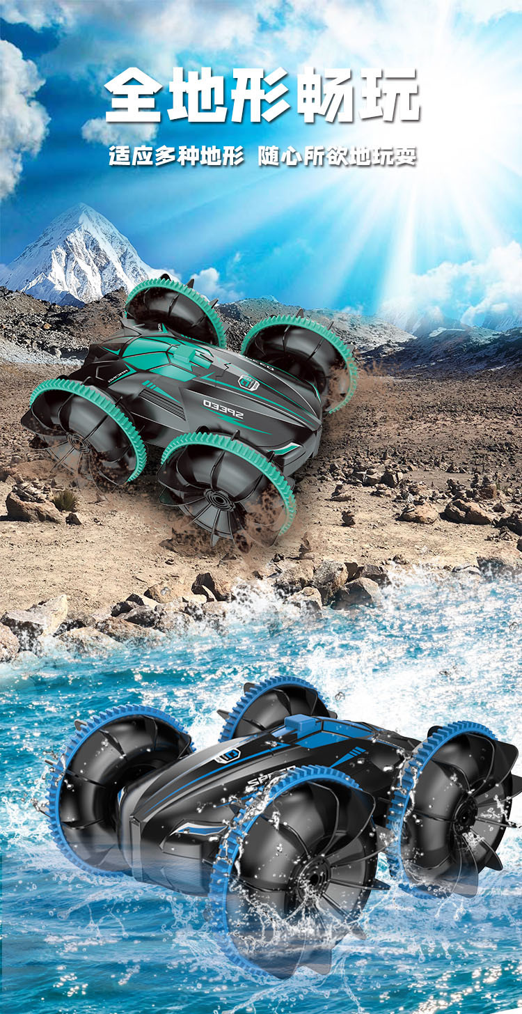 跨境遥控汽车玩具男孩水陆两栖车儿童遥控车电动翻滚特技防水
