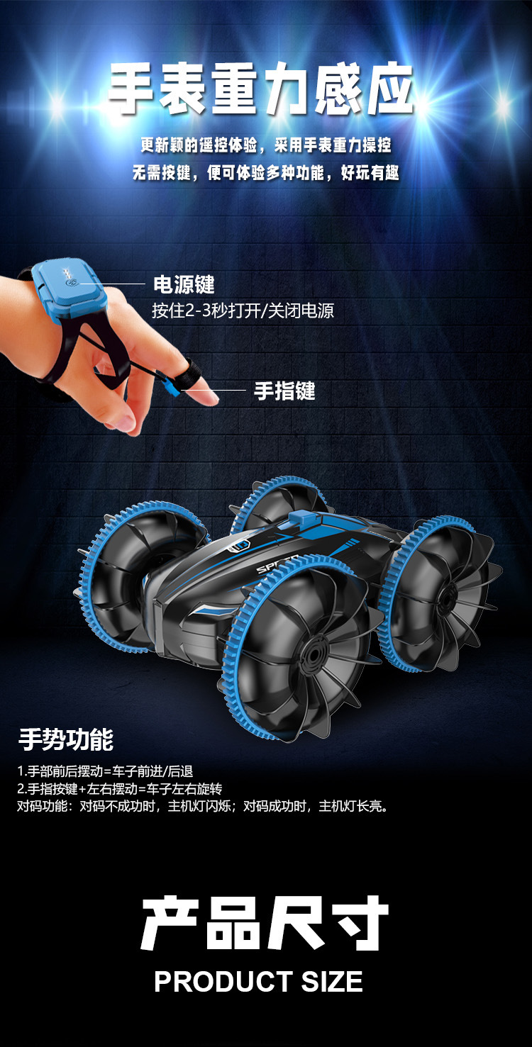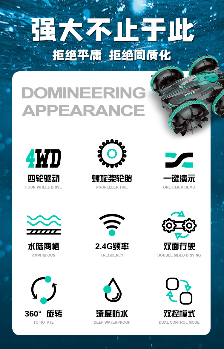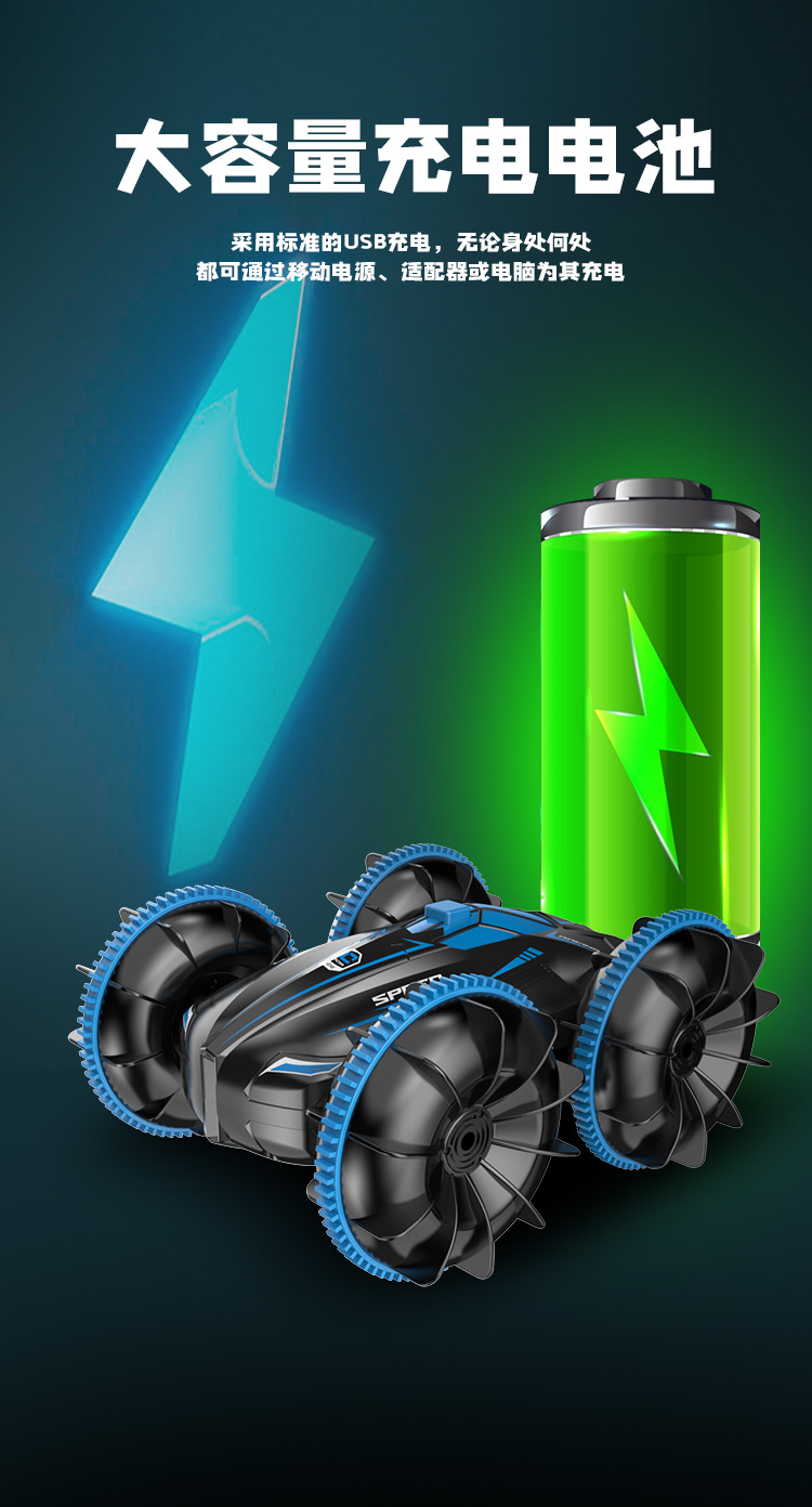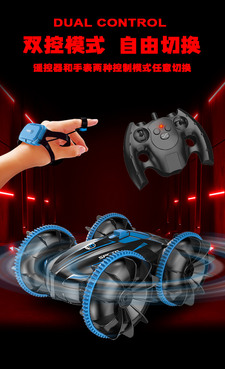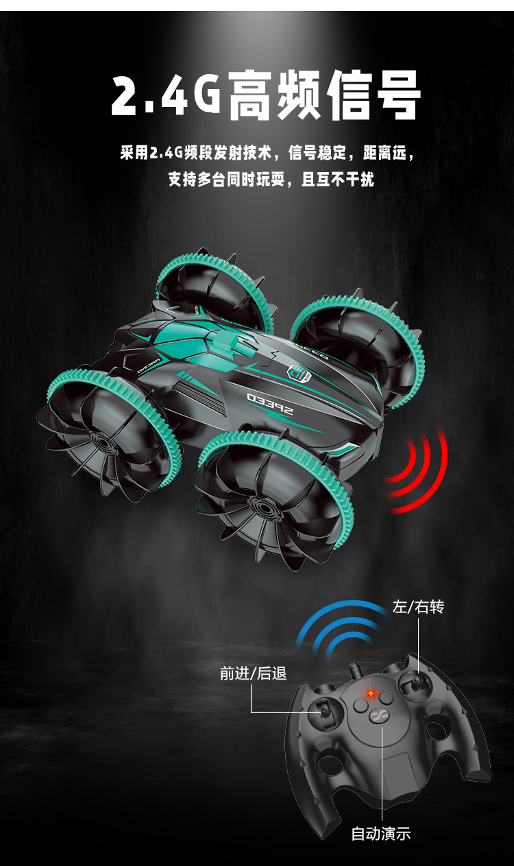 跨境遥控汽车玩具男孩水陆两栖车儿童遥控车电动翻滚特技防水