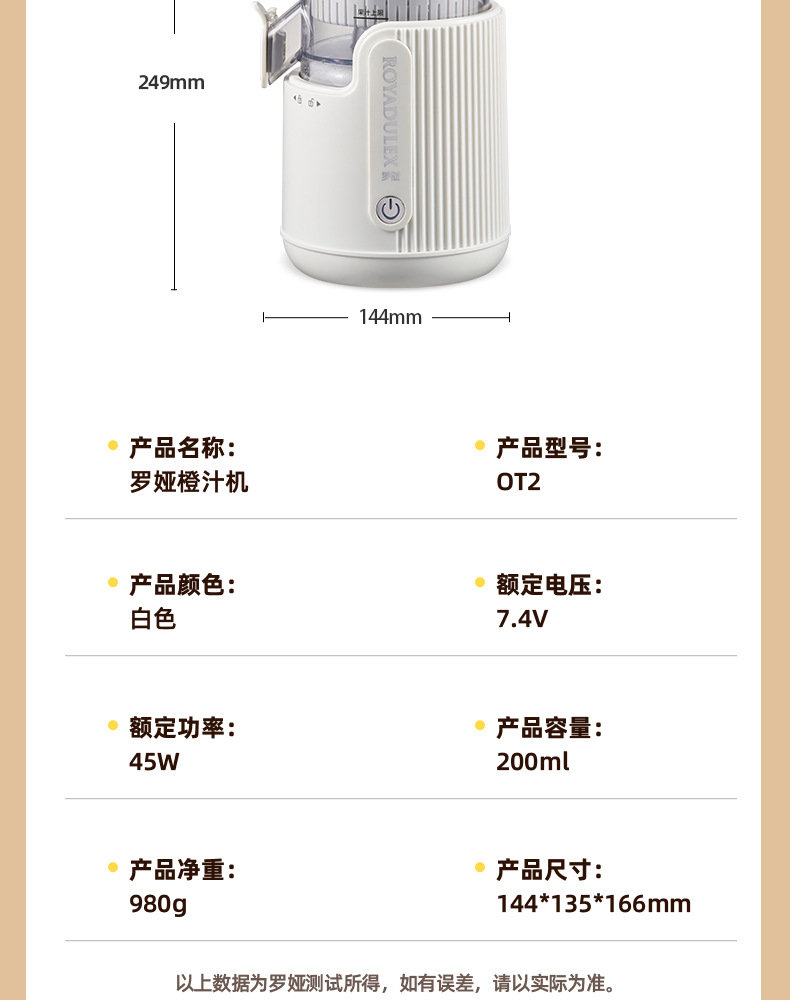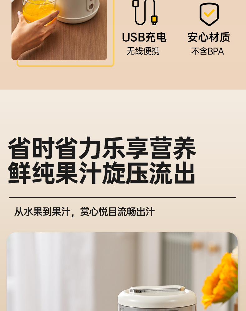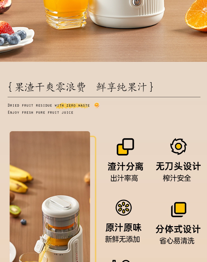 橙汁榨汁机果汁机特大口径渣汁分离家用便携式蔬果汁