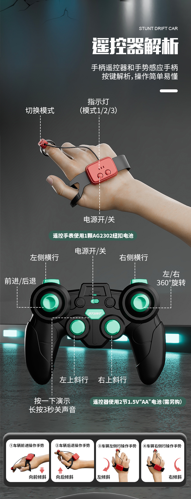 手势感应遥控车翻滚四驱车越野旋转双面漂移特技车儿童玩具男孩车