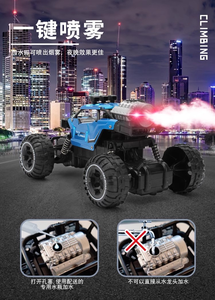 跨境儿童遥控车充电遥控汽车玩具男孩子高速四驱越野车喷雾攀爬车