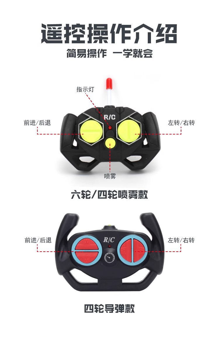 跨境儿童喷雾赛车无线遥控可充电高速灯光特技漂移车