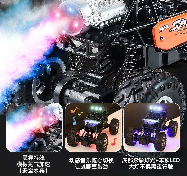 跨境合金越野遥控车高速耐摔攀爬车喷雾款灯光音乐儿童玩具赛车模