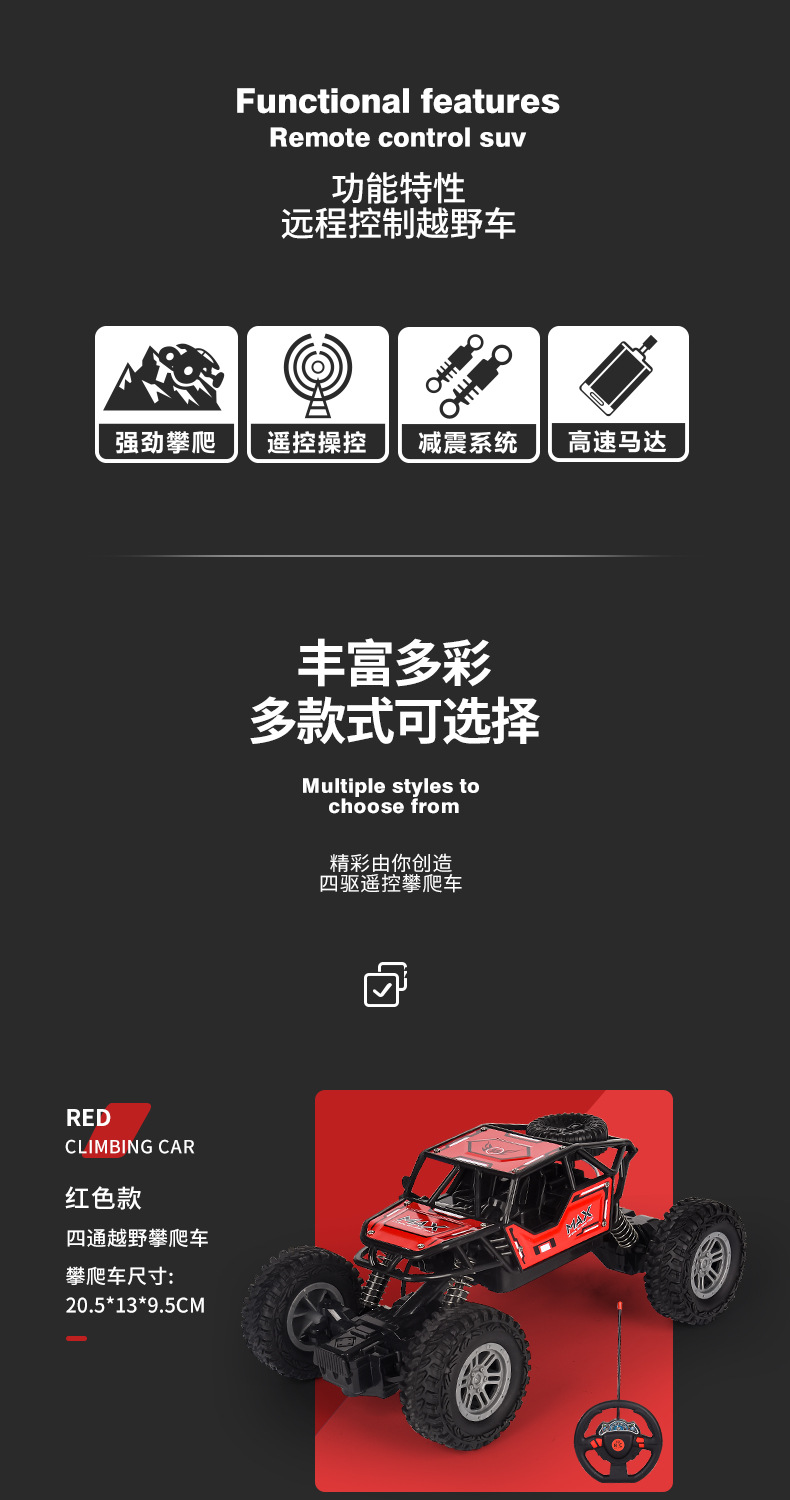 跨境遥控越野四驱合金攀爬车充电高速四通遥控车漂移儿童男孩玩具